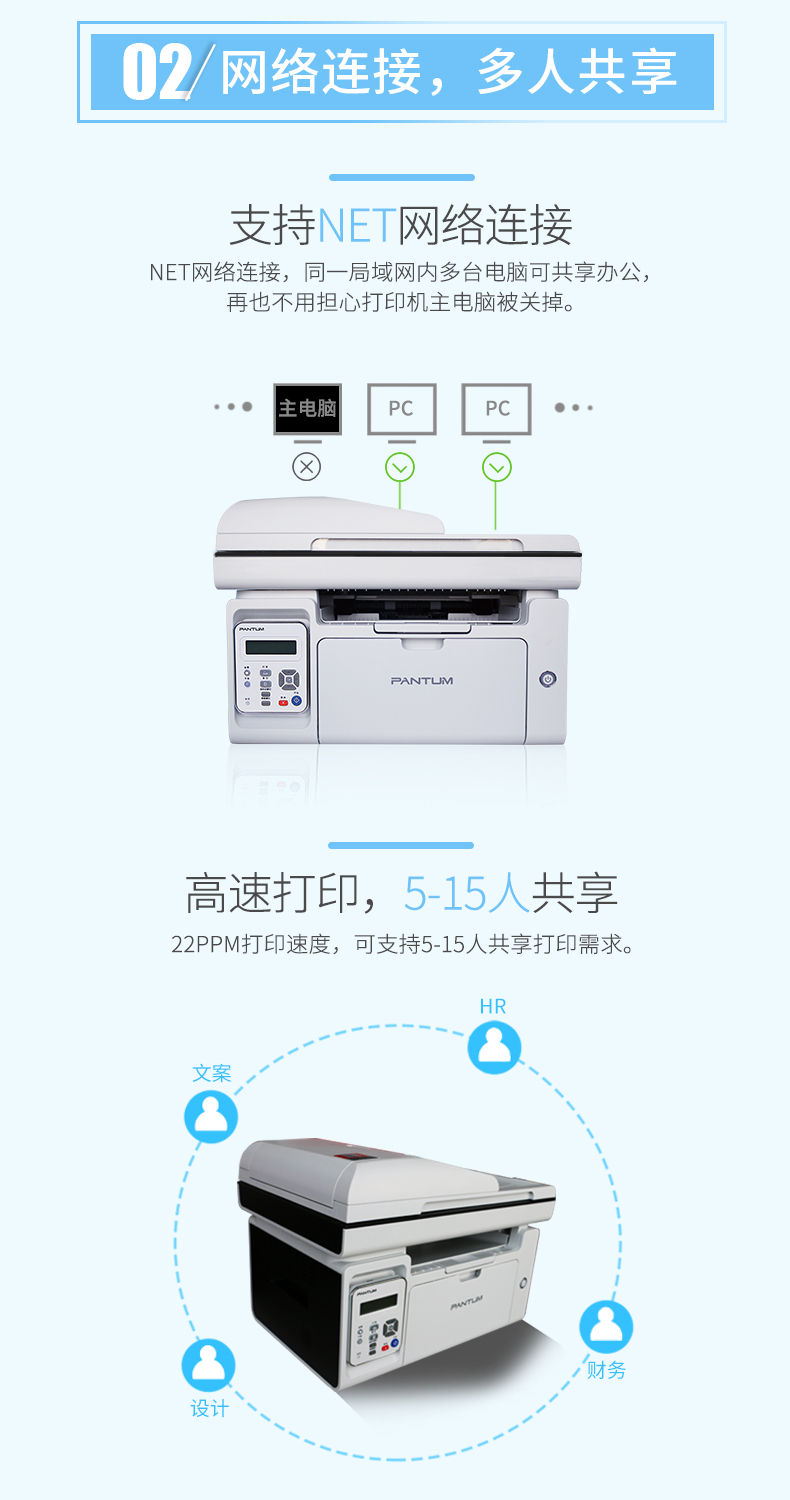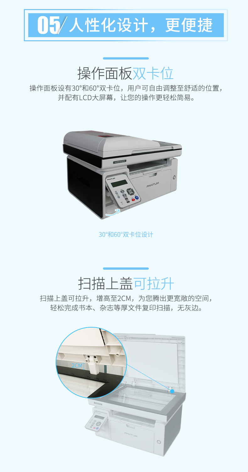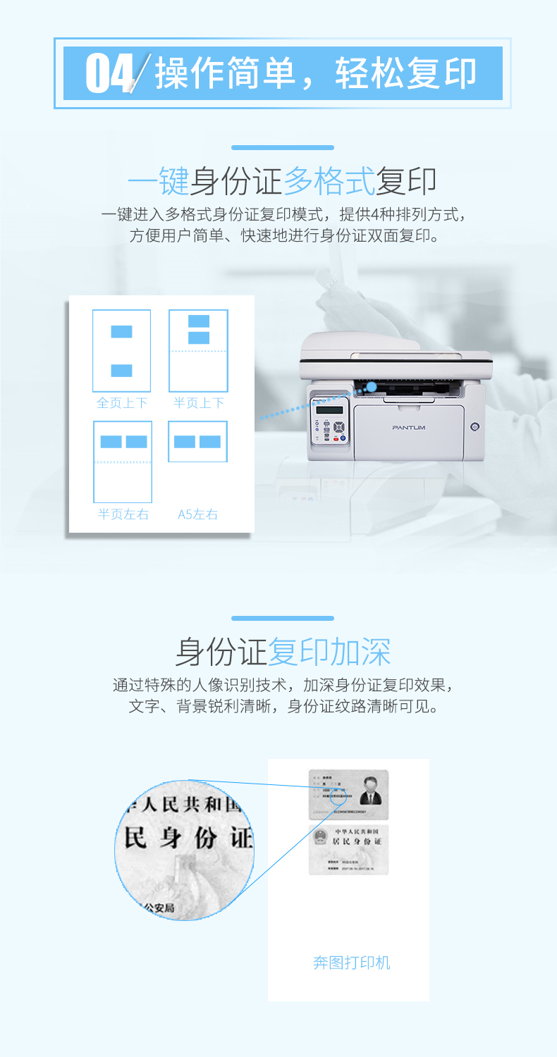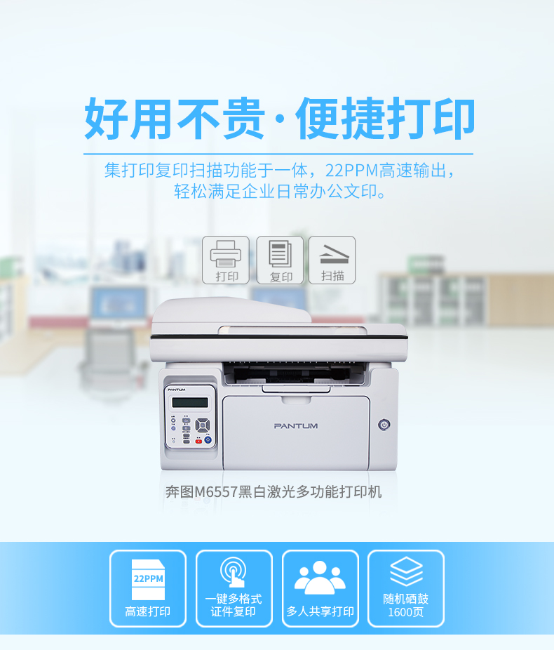 奔图(PENTUM)M6557N A4黑白激光多功能一体机 (打印/复印/扫描/带自动进稿器) 台 灰色