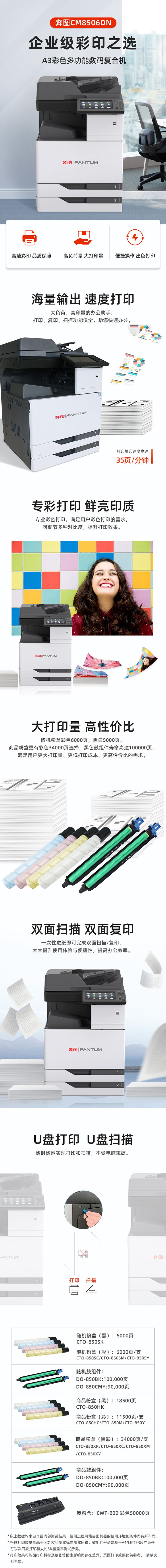 奔图(PANTUM) CM8506DN A3彩色多功能数码复合机 台 灰色
