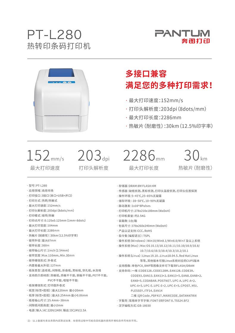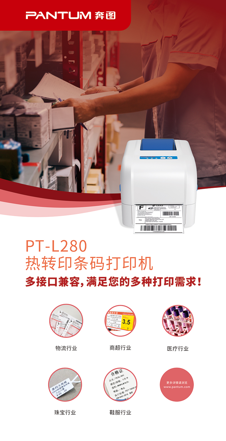 奔图(Pantum)PT-L280 条码打印机 标签条码打印 台 灰色