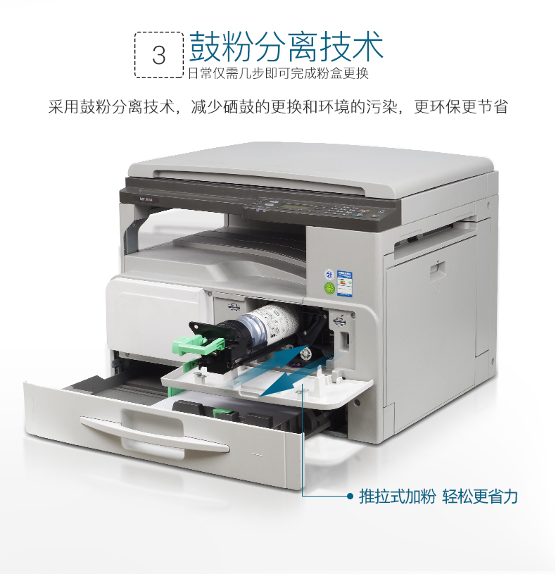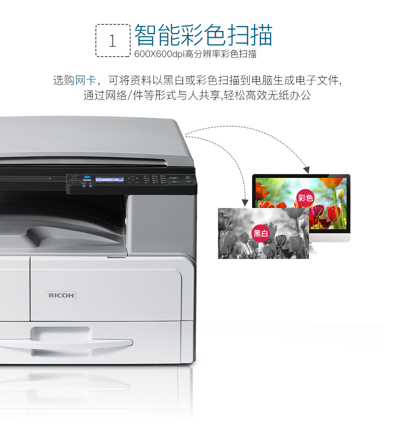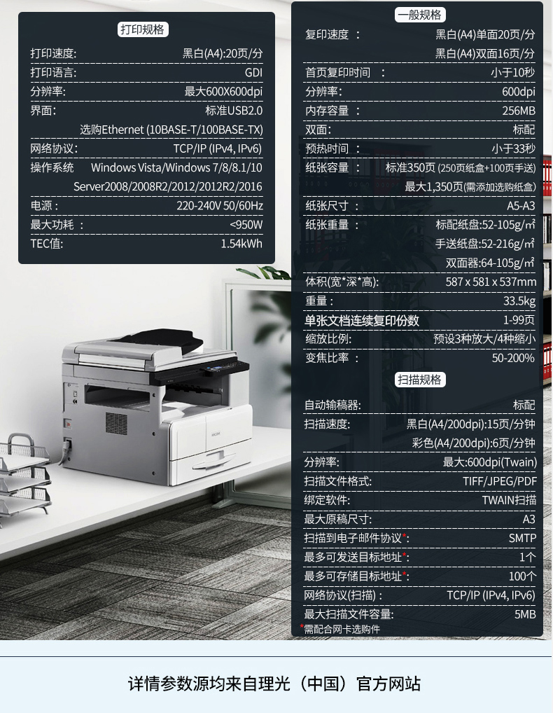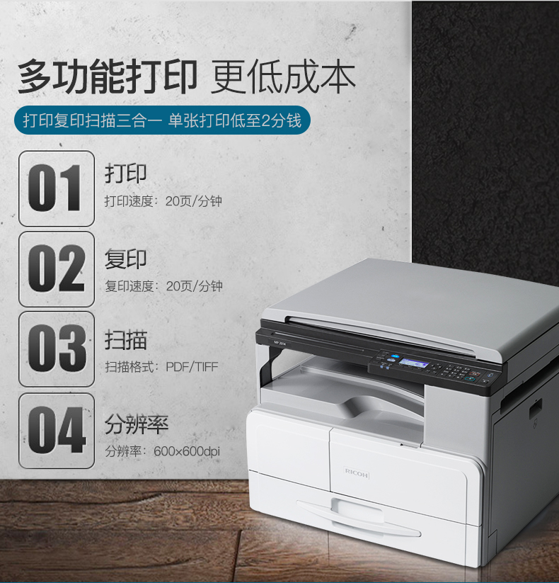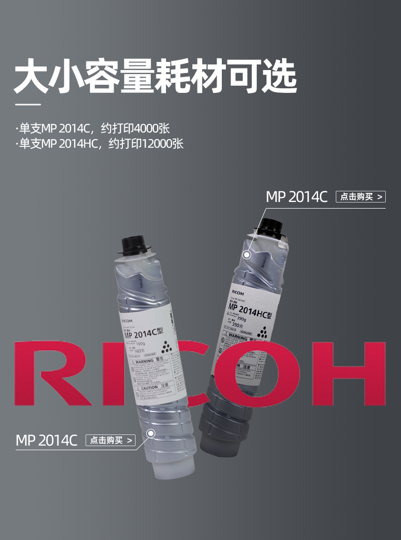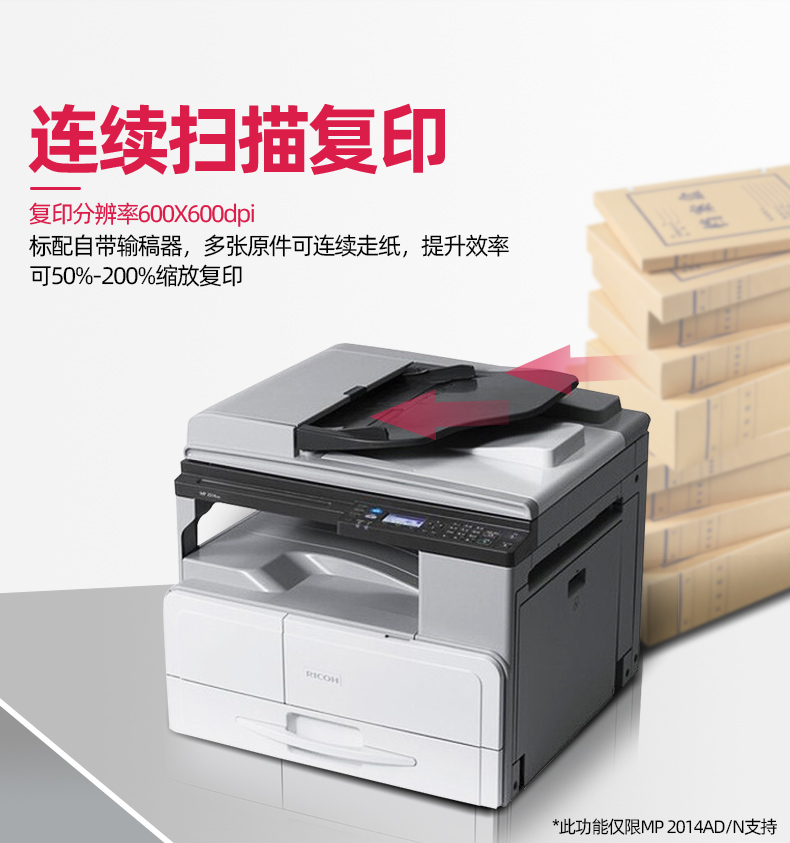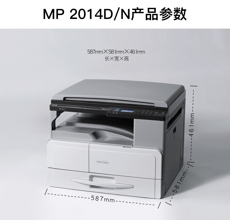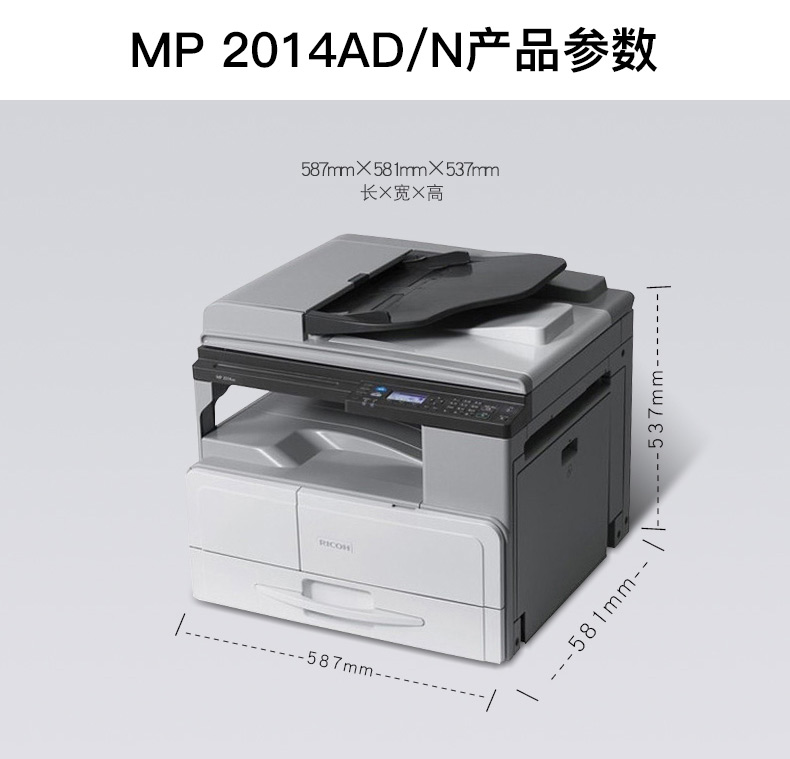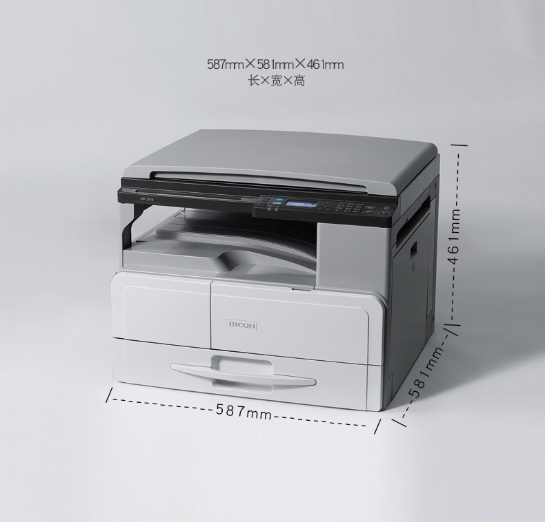 理光(RICOH)黑白复合机 A3幅面(打印/复印/扫描)标配盖板 MP2014 灰色