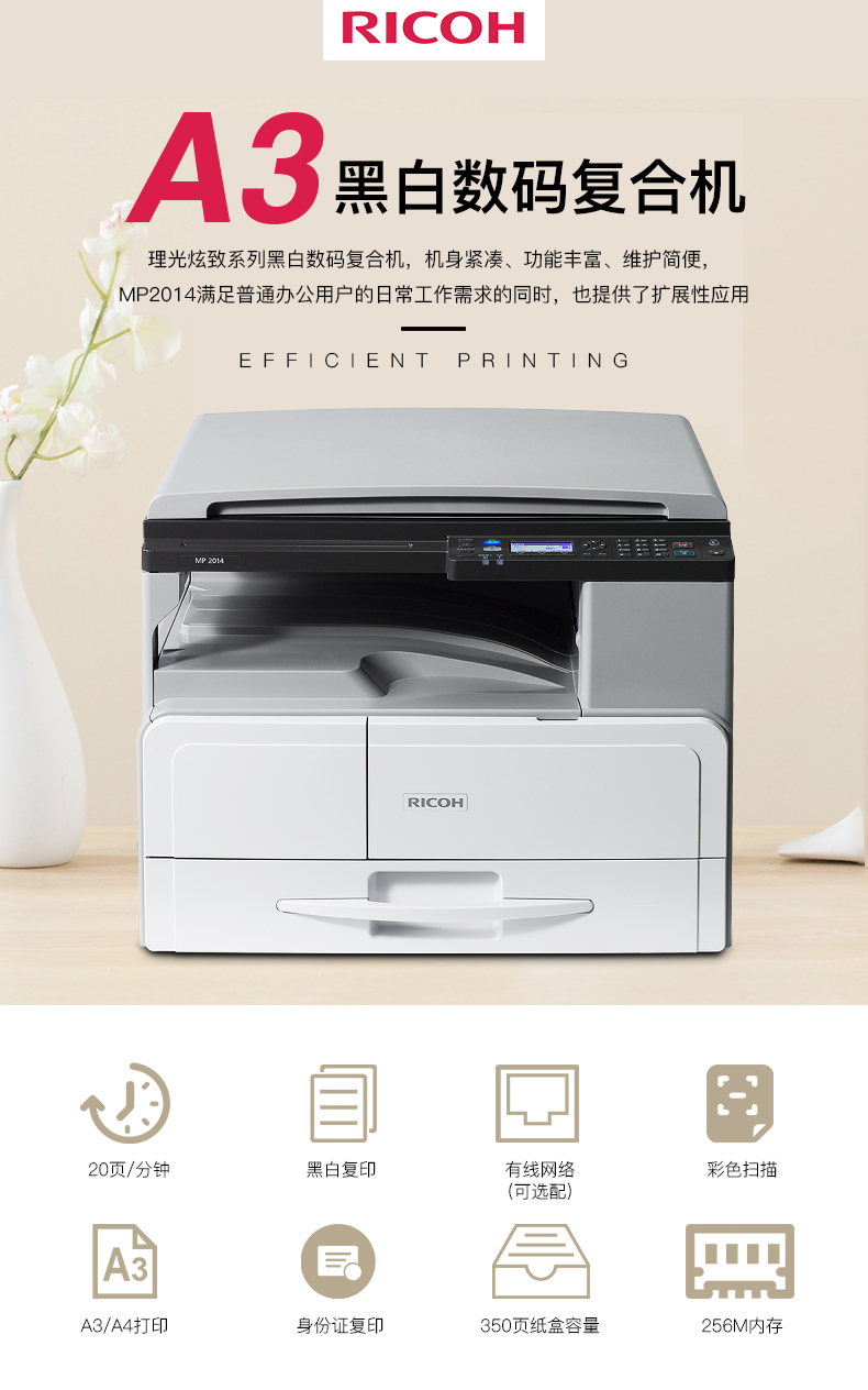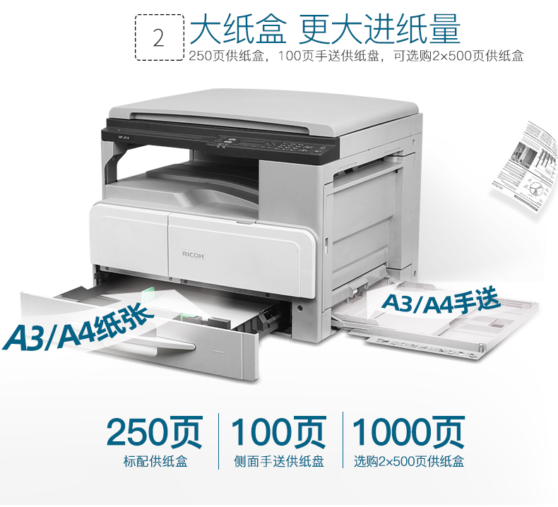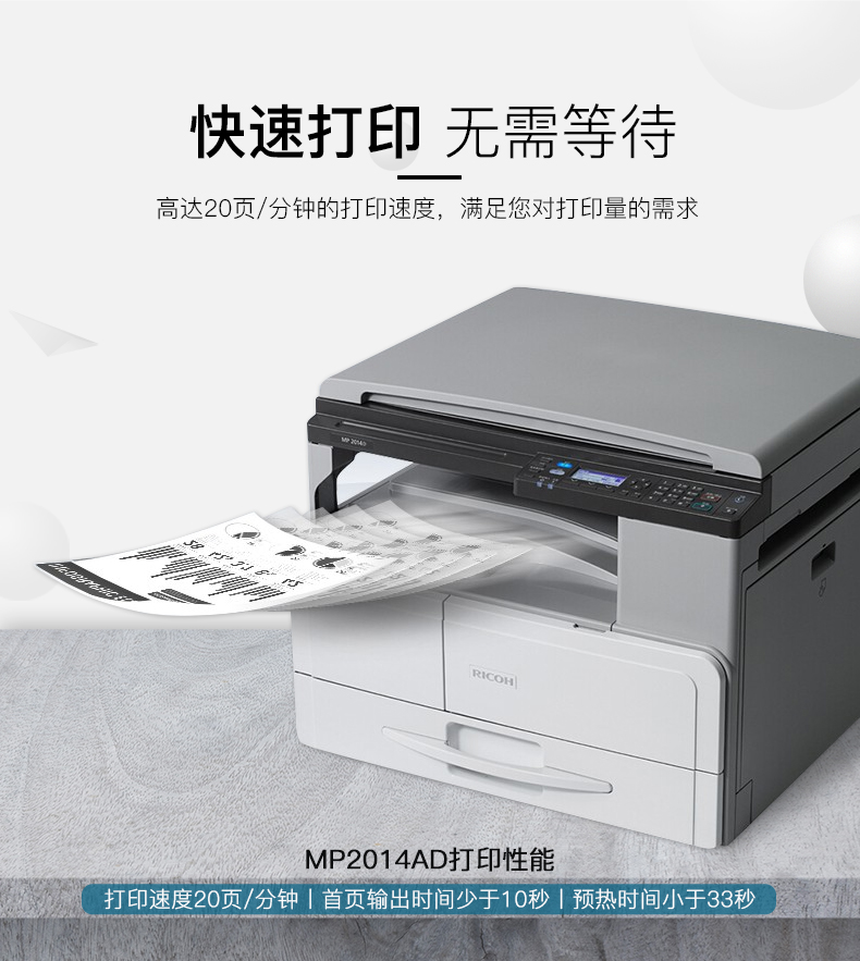 理光(RICOH) 黑白复合机 A3幅面 标配双面输稿器MP2014AD 单位:台 灰色