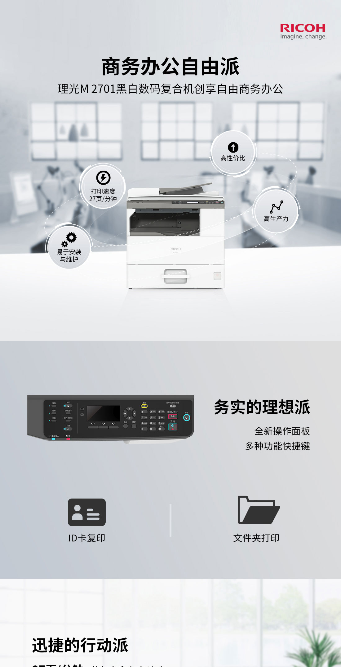 理光(RICOH)黑白复合机 A3幅面(打印/复印/扫描/双面打印)标配双面输稿器+双纸盒 M2701 灰色