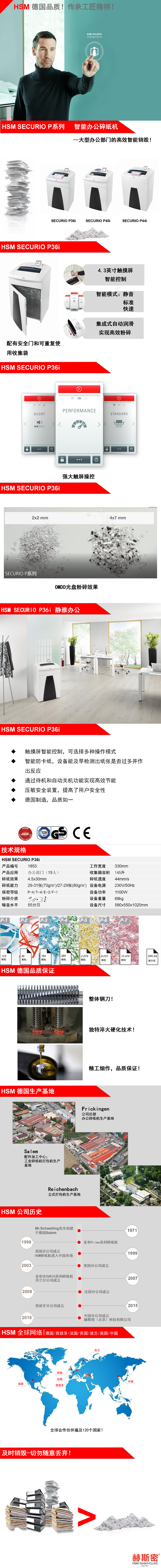 赫斯密(HSM) 大型智能办公碎纸机SECURIO P36i 本白色