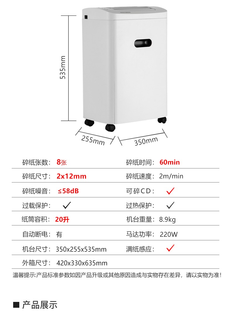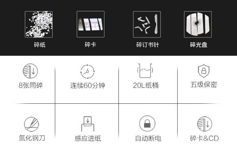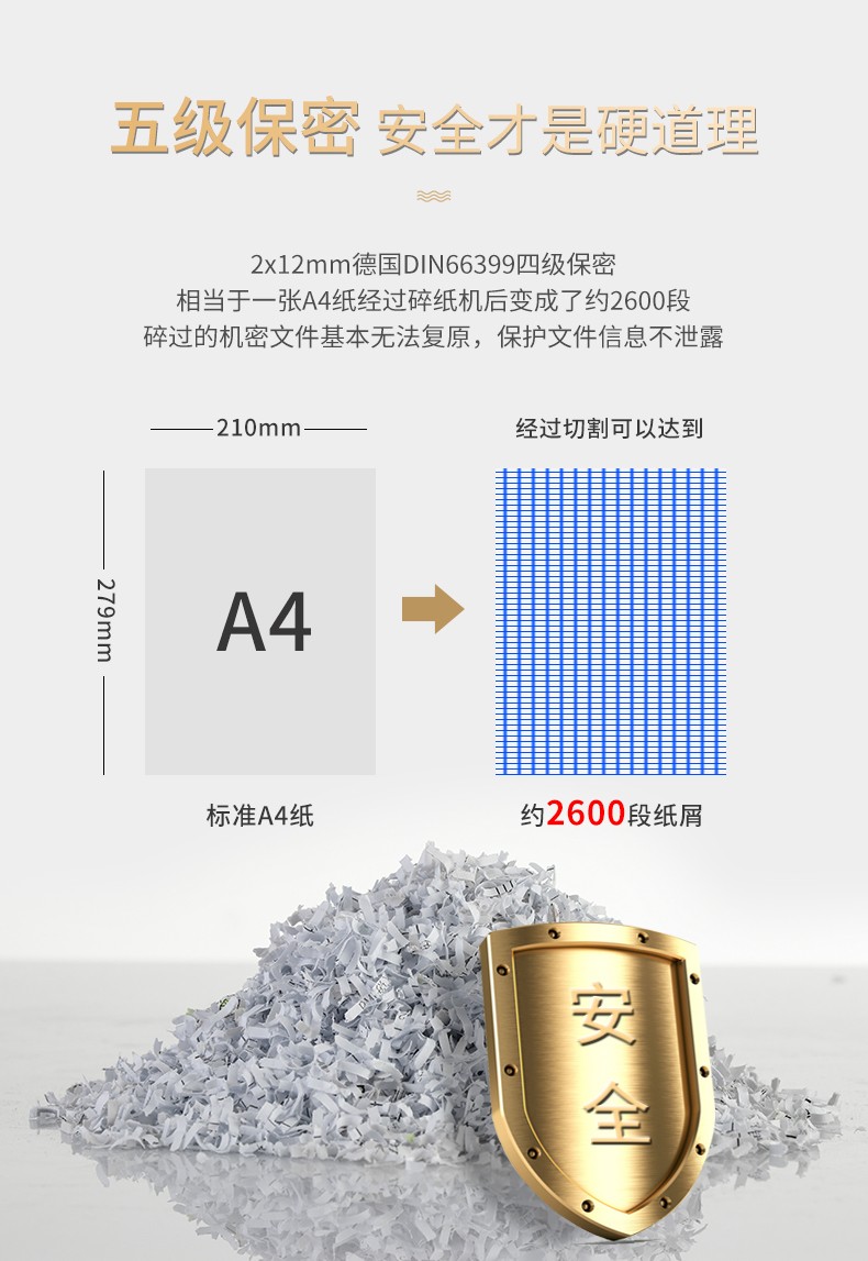 震旦AURORA家用办公大功率碎纸机 5级保密AS0818CD 黑色