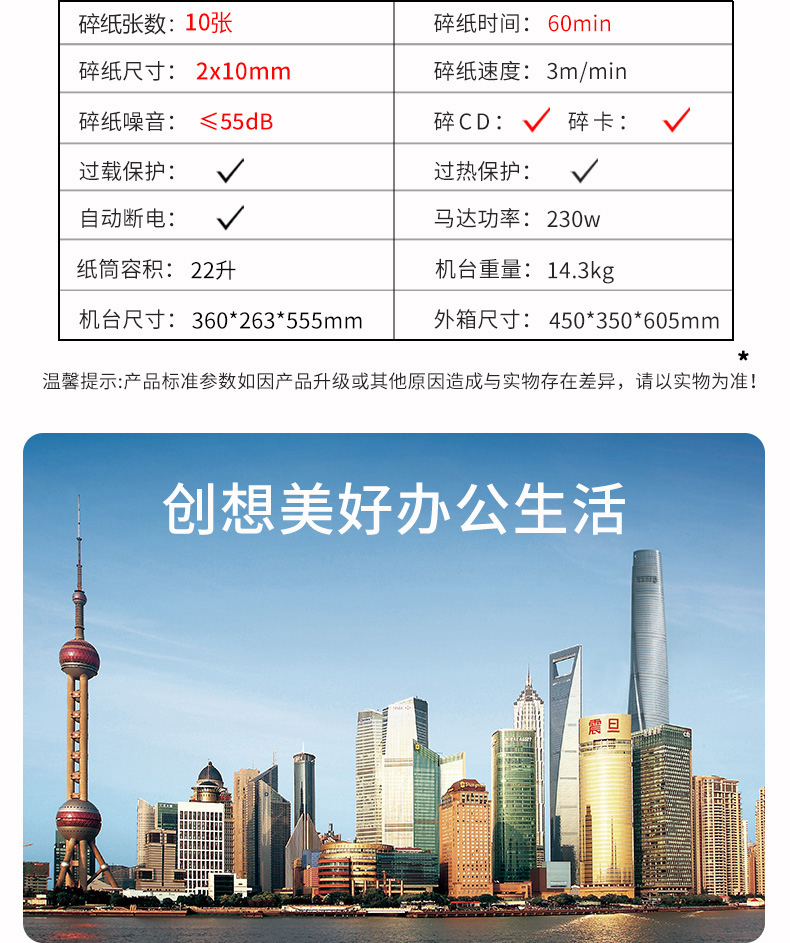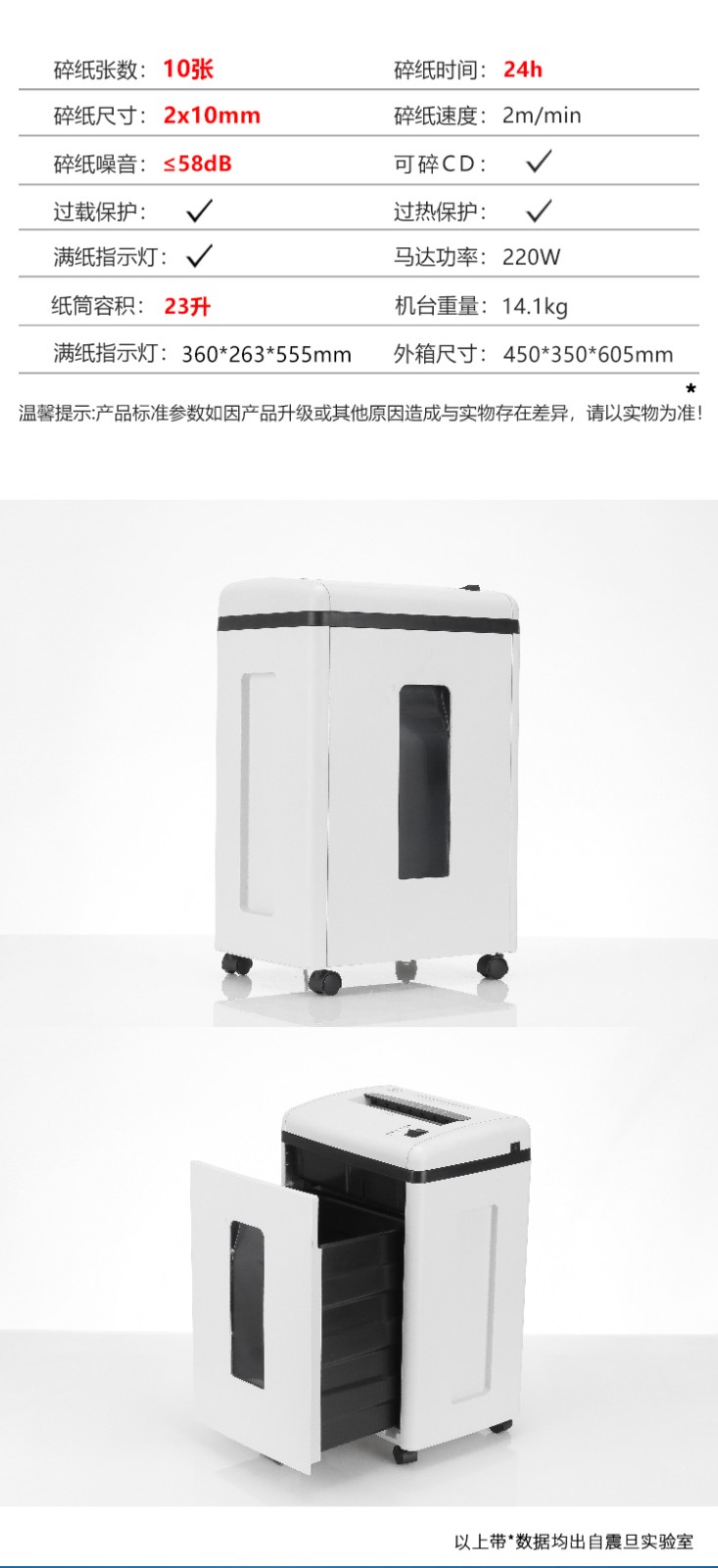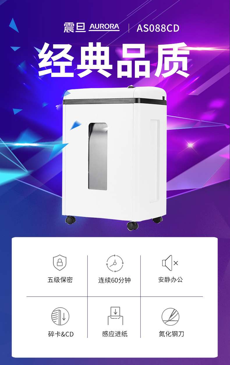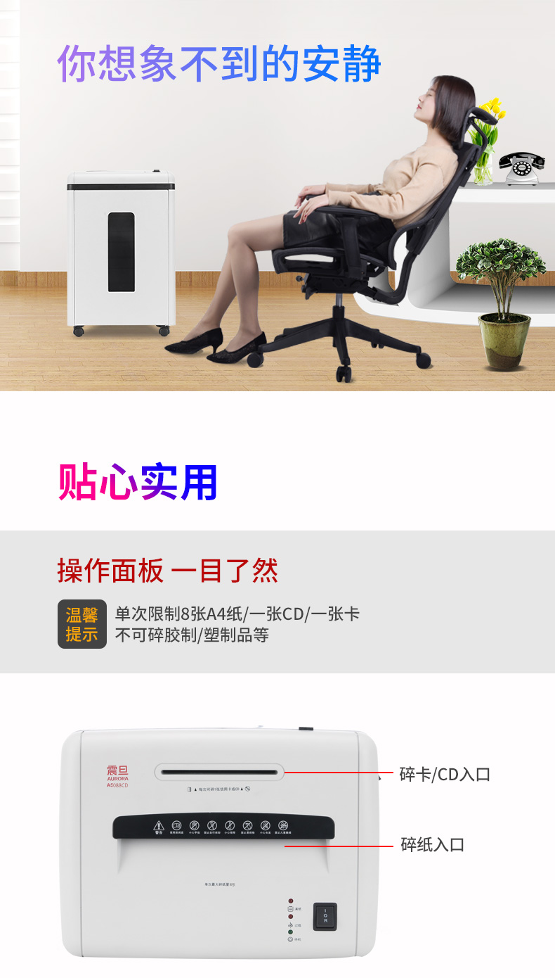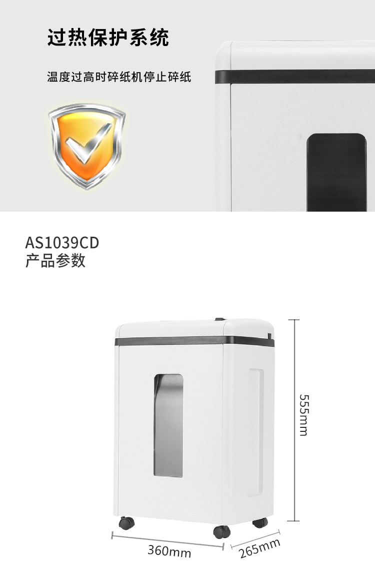 震旦(AURORA)AS1039CD 5级保密细碎办公碎纸机(单次碎纸10张/连续碎纸60分钟) 白色 白色