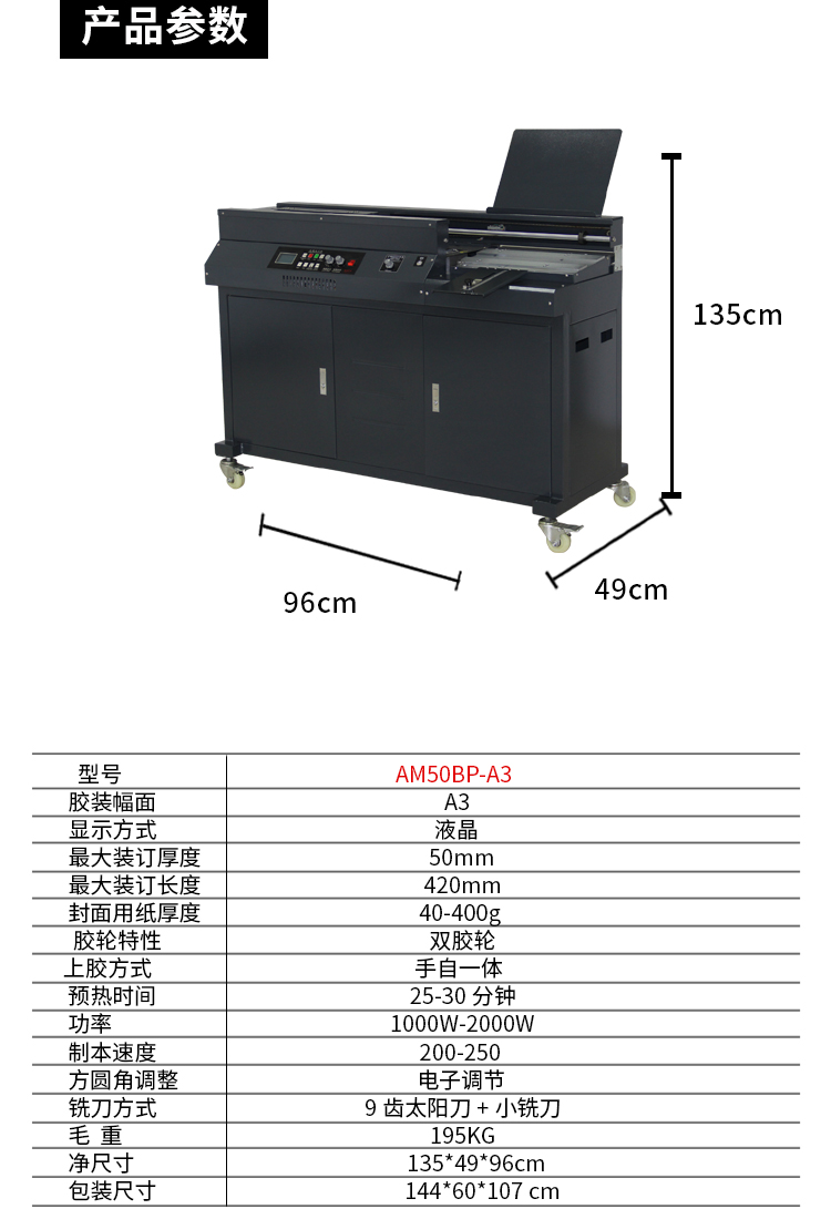震旦AURORA 50mm全自动柜式无线胶装机A3幅面标书文件书籍论文报告合同 双胶轮热熔胶粒装订机 AM50BP-A3 黑色