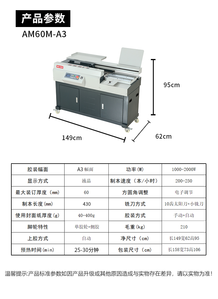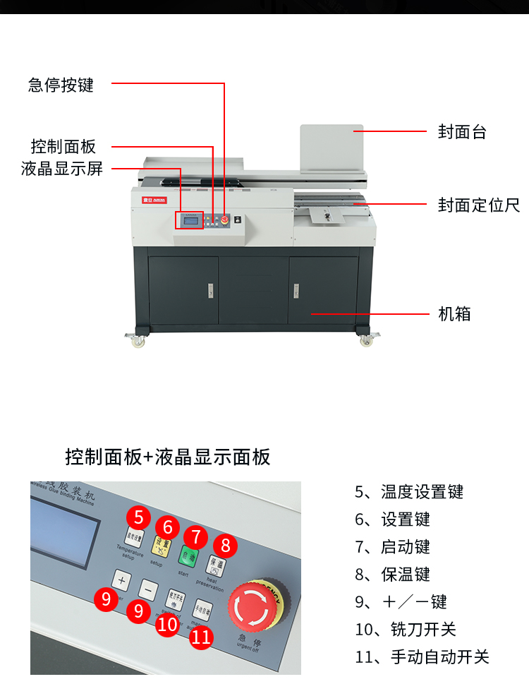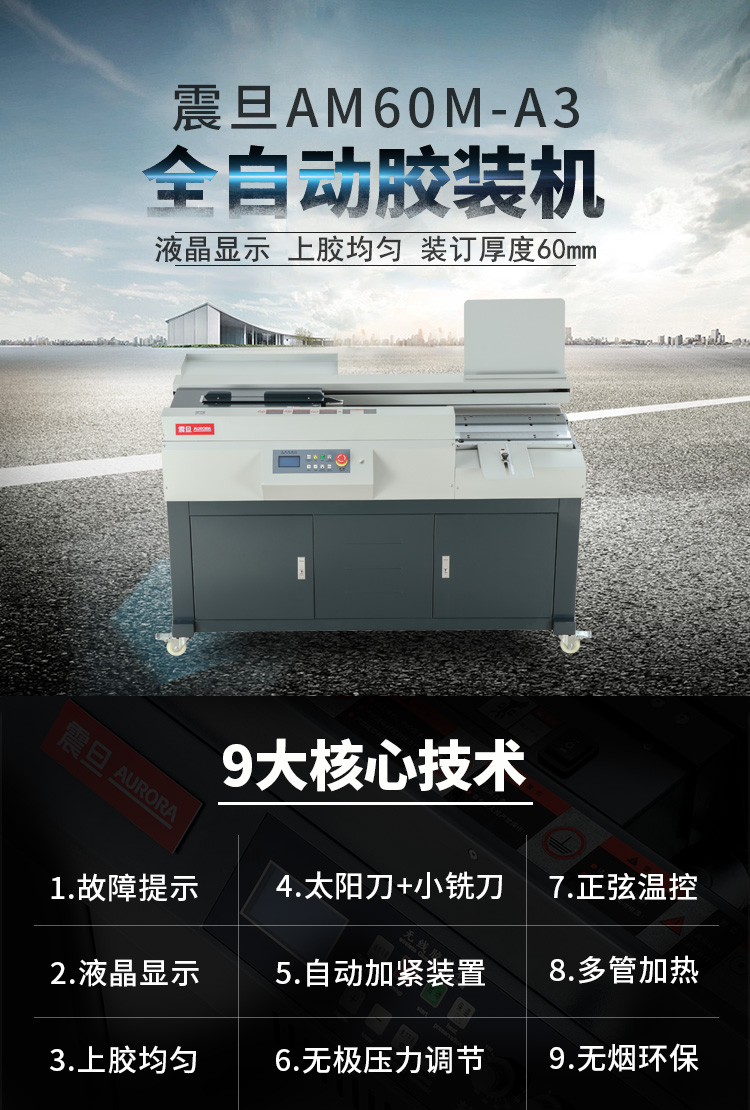 震旦AURORA 60mm全自动柜式无线胶装机A3幅面标书文件书籍论文报告合同 热熔胶粒装订机单胶轮+侧胶 AM60M-A3 灰色