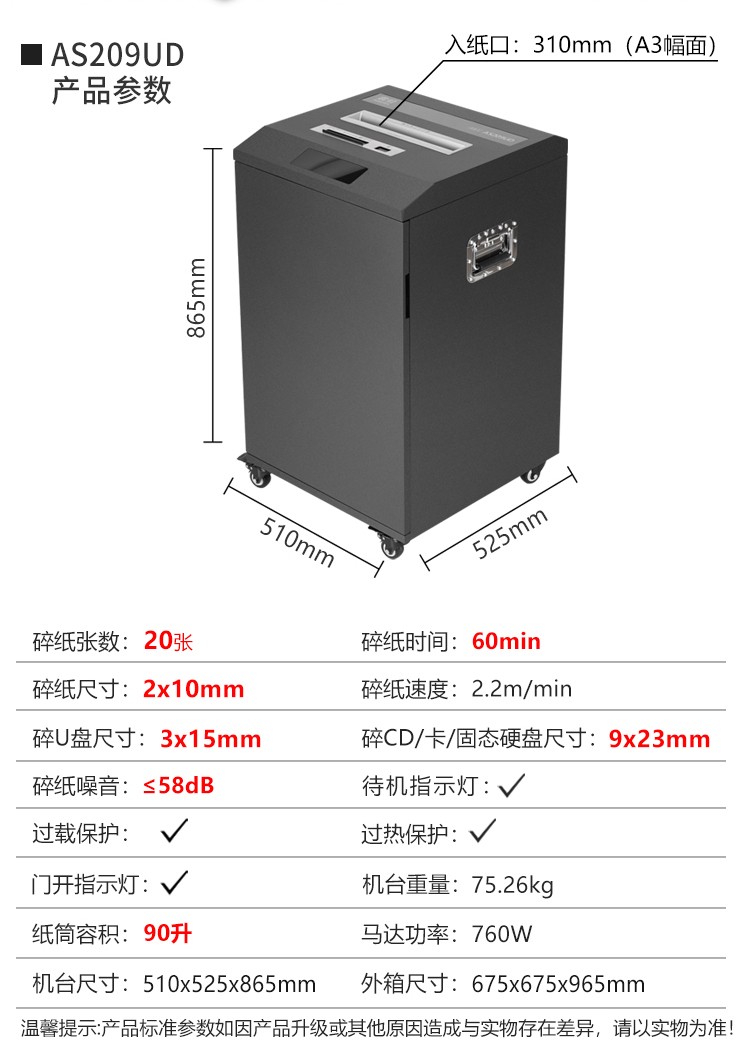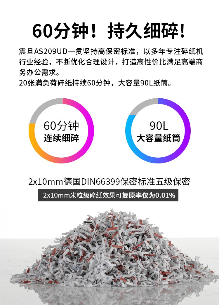 震旦(AURORA)AS209UD 5级商用高保密 碎纸机单位:台 深灰色