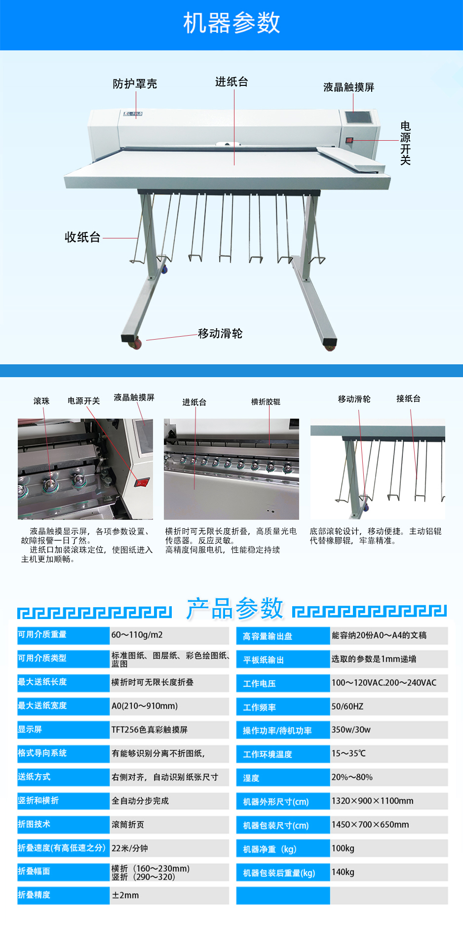 震旦AURORA 叠图机A0纸叠纸机触摸屏工程图纸折页机 绘图纸对折机 22米/分钟 AD-4000 白色