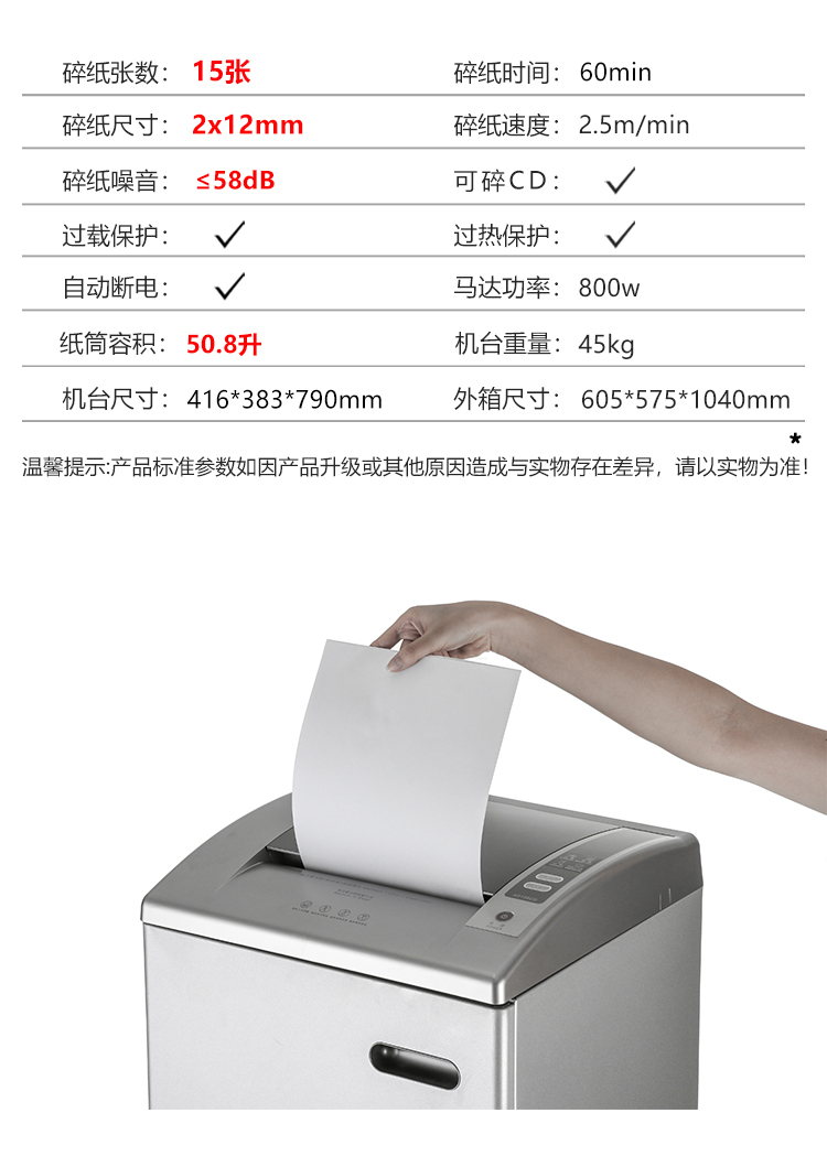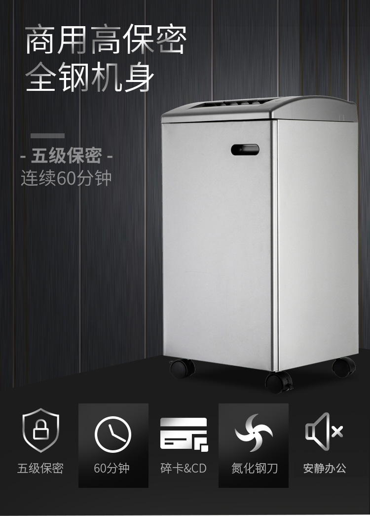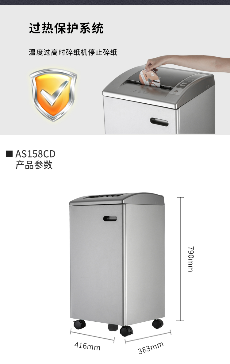 震旦 5级保密办公商用碎纸机(单次15张 持续60分钟 50.8L 可碎卡、光盘) AS158CD台 灰色