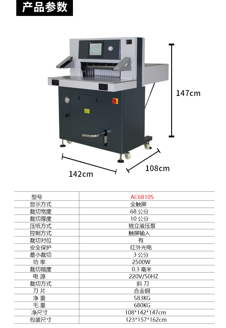 震旦AURORA 100mm双液压系统切纸机A3幅面大台面10英寸触屏 标书文件裁纸机书籍档案修边切纸刀 AC6810S 深空灰