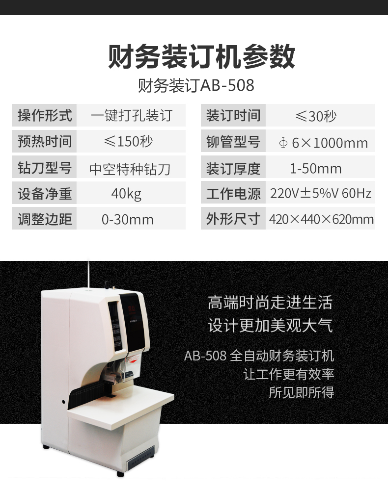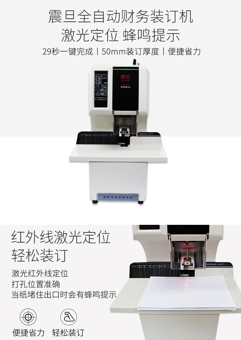 震旦(AURORA)全自动财务装订机 电动装订机铆管文件档案 凭证装订机AB508单位:台 白色