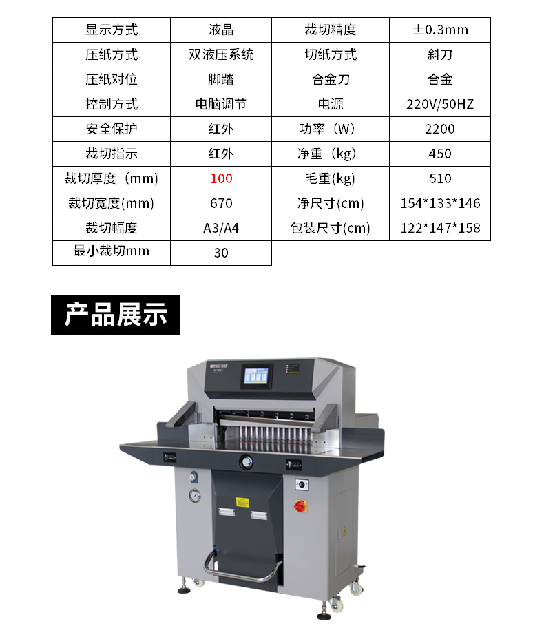 震旦AURORA 100mm双液压系统切纸机A3幅面液晶屏 标书文件裁纸机书籍档案修边切纸刀 AC6700PX 深空灰