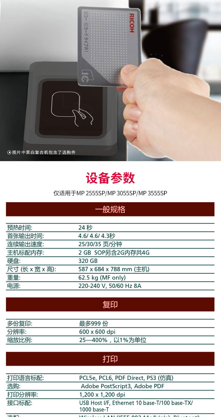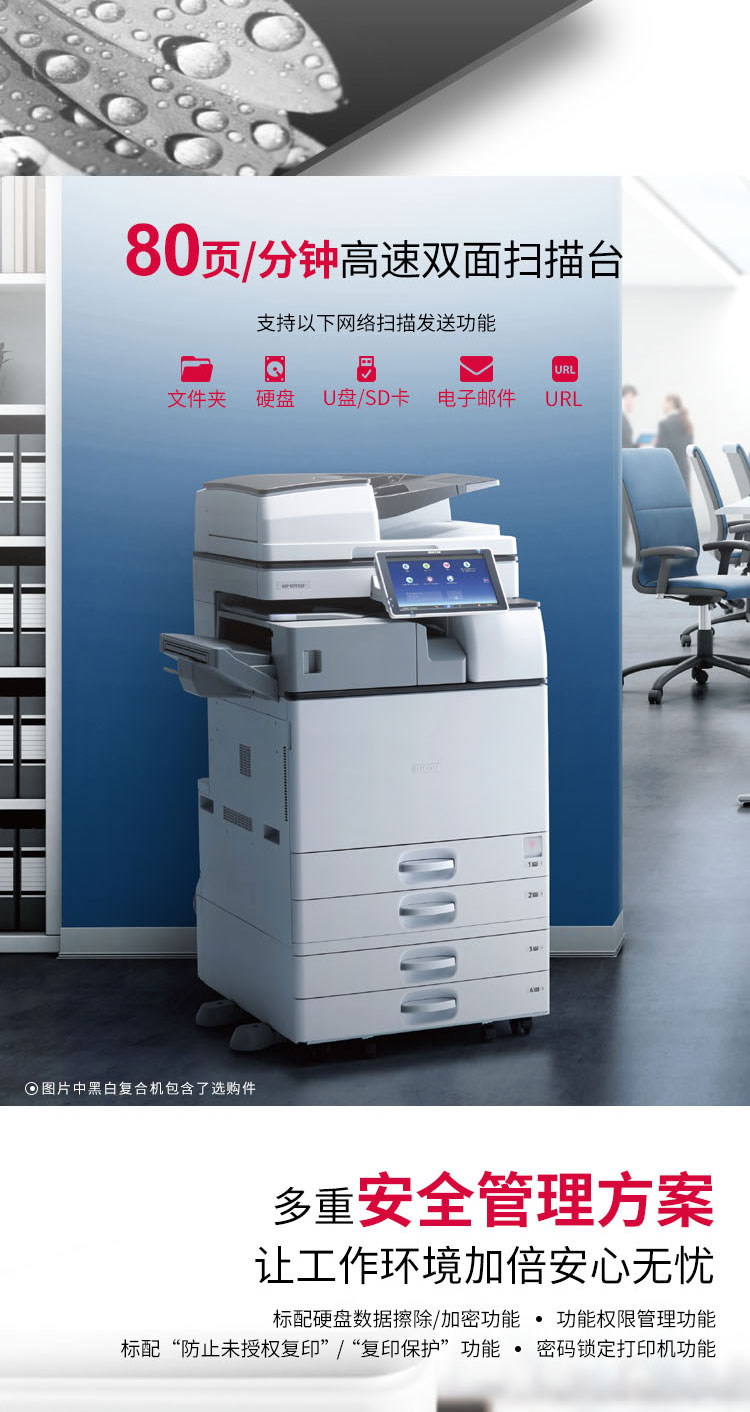 理光(Ricoh)A3黑白数码复合机 标配+输稿器MP 3555SP 本白色