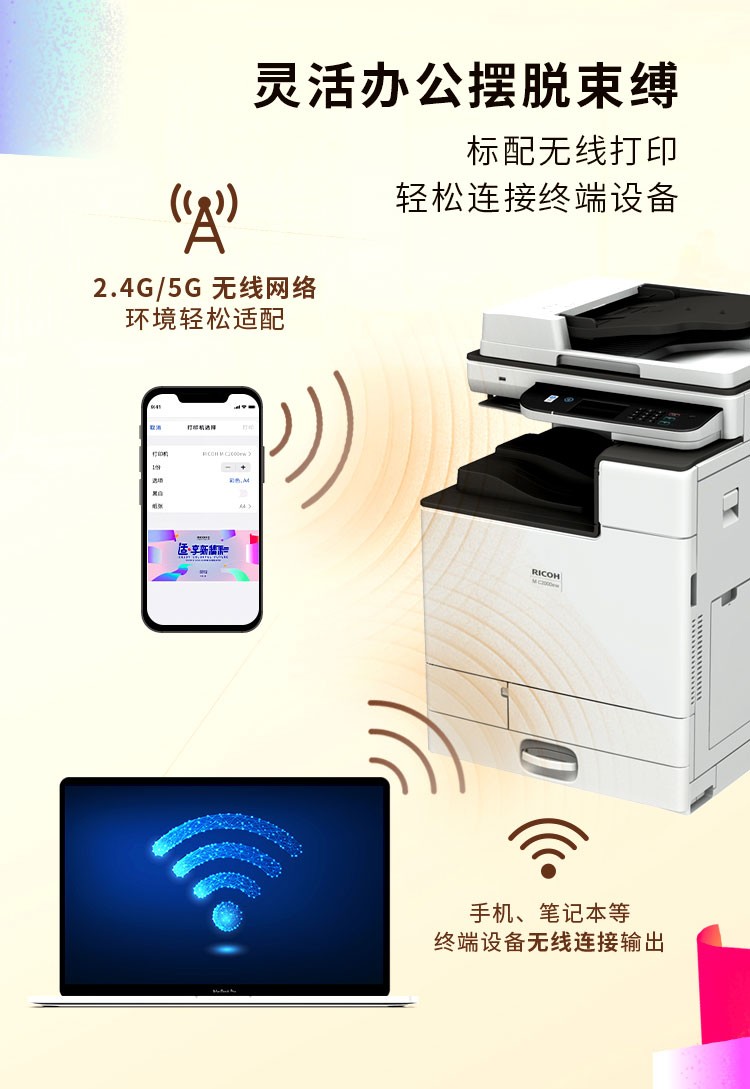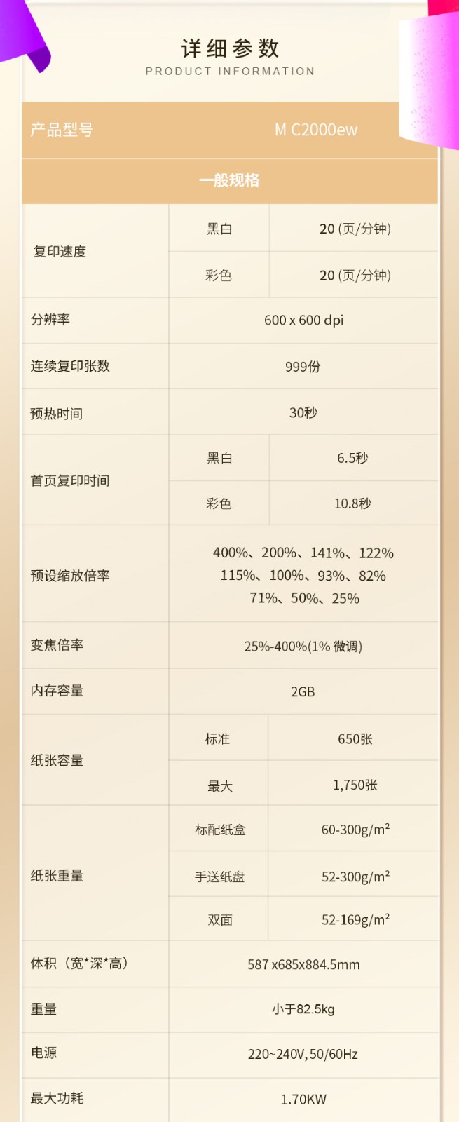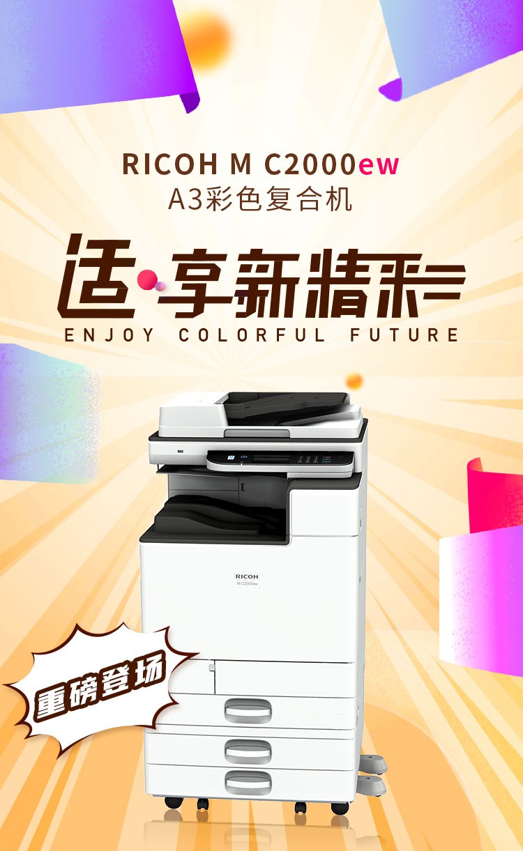 理光/2000ew/IMC2000 A3彩色激光打印机多功能一体机数码复合机复印机 MC2000+双纸盒+输稿器MC2000 本白色