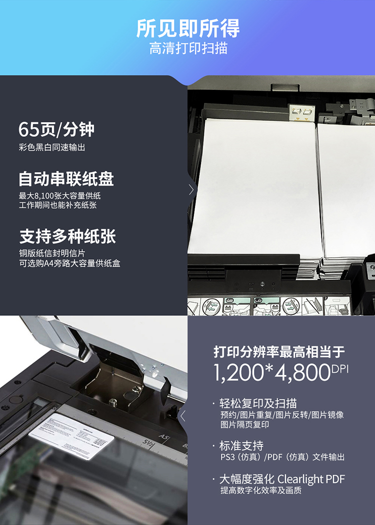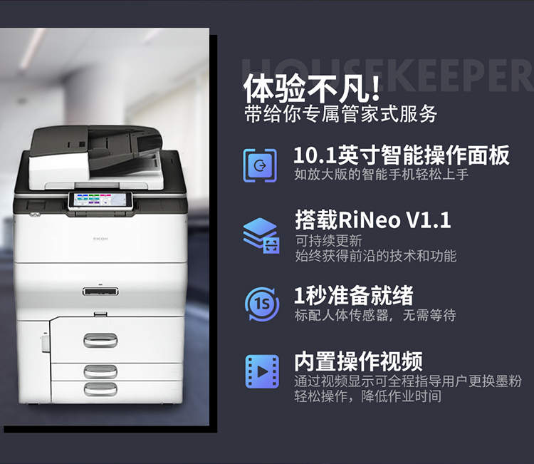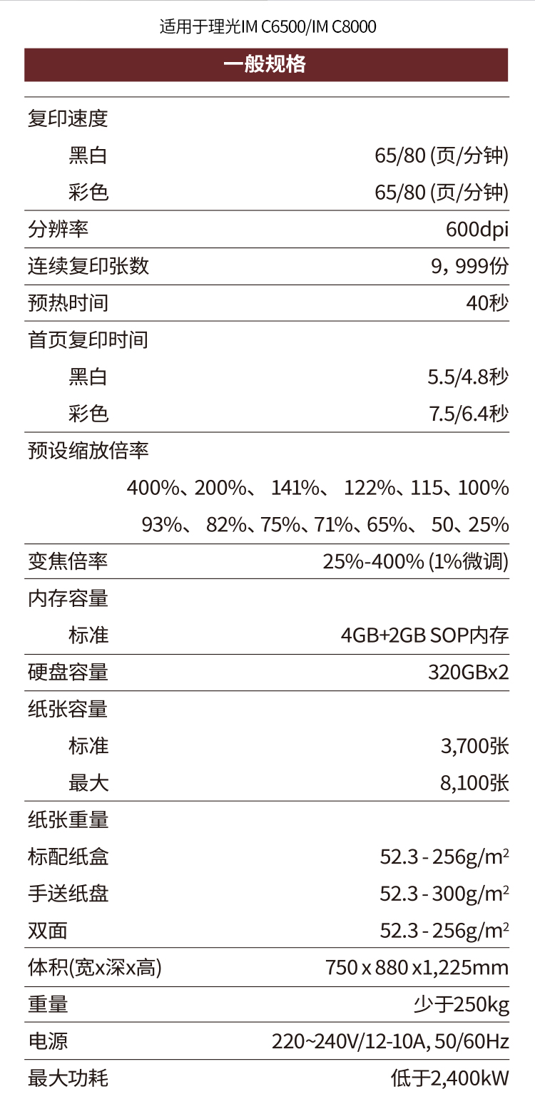 理光(Ricoh) A3彩色数码多功能一体机(主机+双面同步送稿器+2000页小册子装订器)IM C6500 本白色