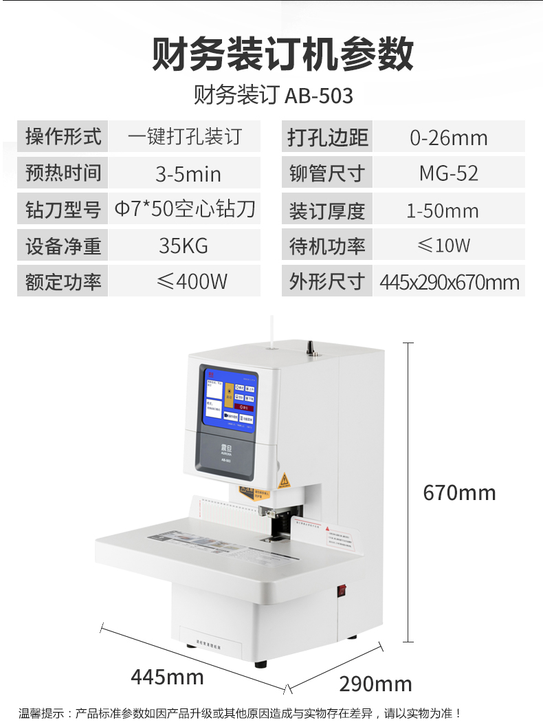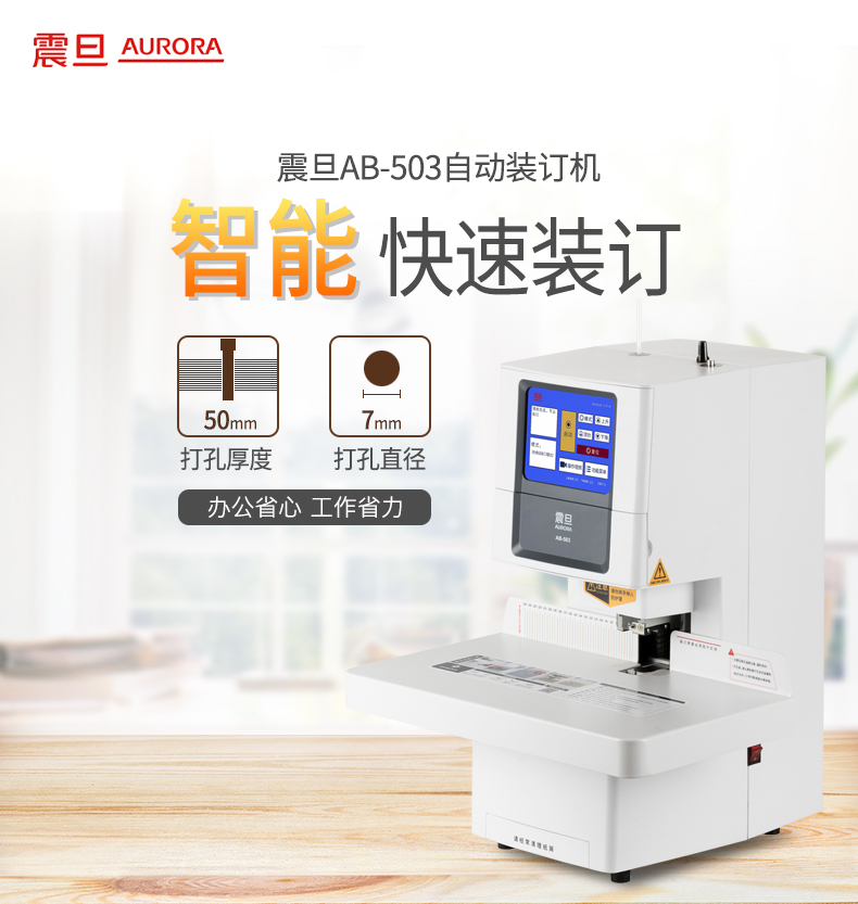 震旦AURORA 自动财务凭证装订机 热熔铆管会计档案打孔机 一键装订大屏幕液晶显示 AB503 台 白色