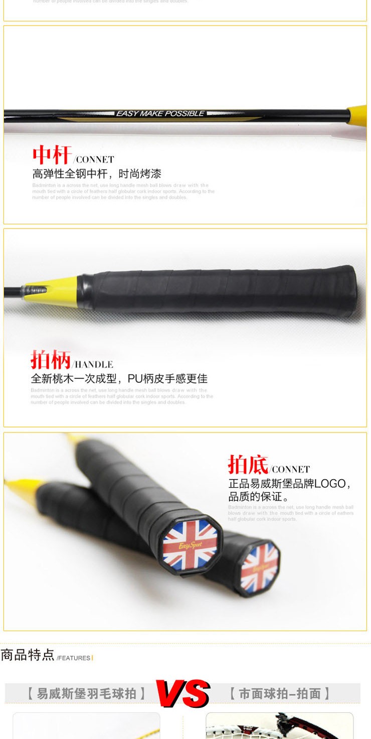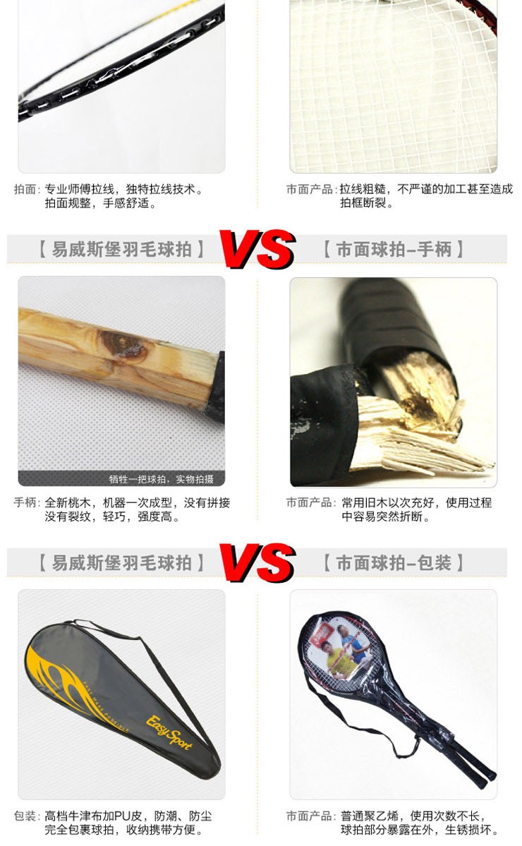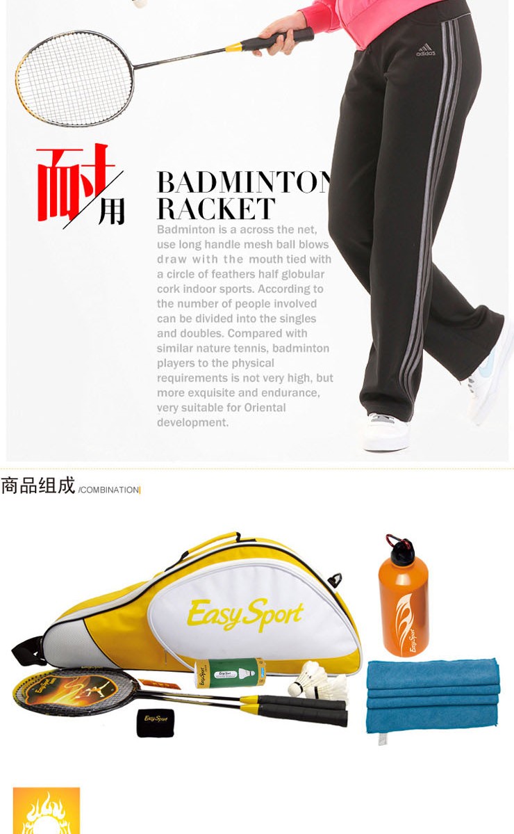 易威斯堡(EasySport)豪华羽毛球套装B 专业球拍 扎实耐用 ES-YM909 混色