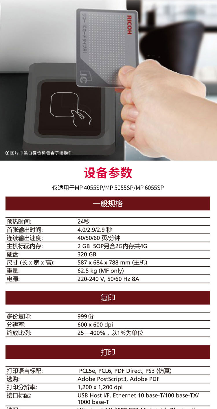 理光(RICOH) 黑白复合机 A3幅面(打印/复印/扫描/双面打印)标配双面输稿器MP4055SP 白色