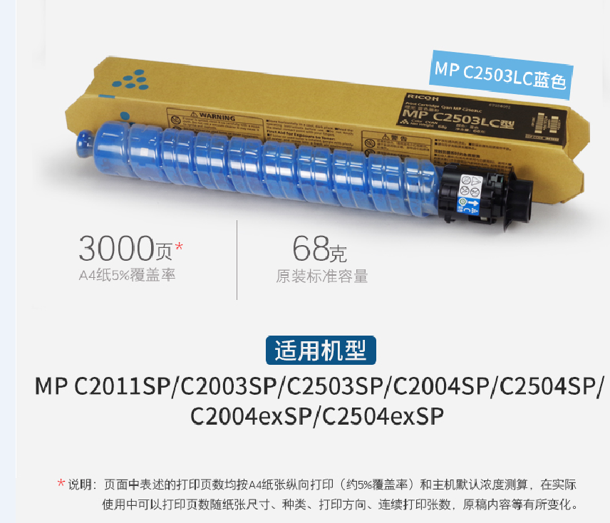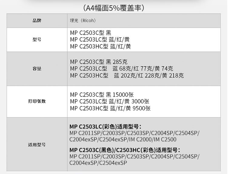 理光(Ricoh)彩色墨粉 碳粉盒适用C2011/C2004/C2504exSP MP C2503HC型 9500页MPC2503HC 黄色