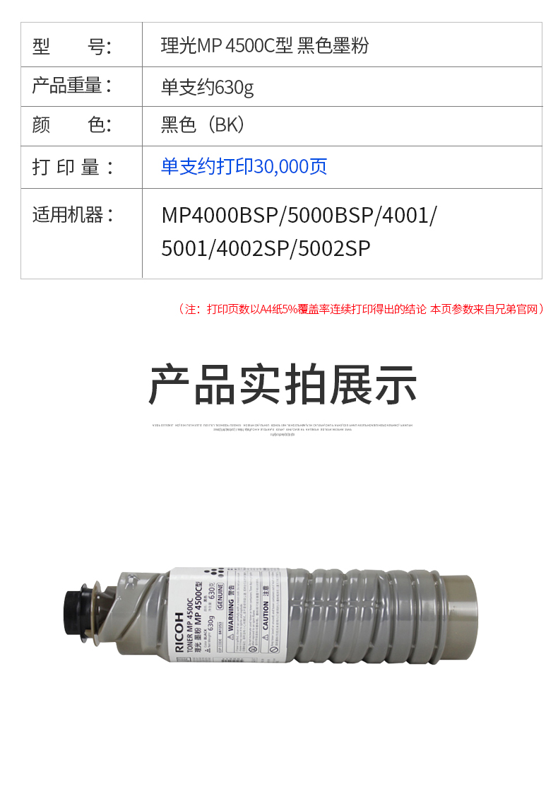 原装理光墨粉盒型 MP4000/5000BSP/4001/5001/4002碳粉 理光MP 4500C粉盒 单支MP 4500C 曜石黑
