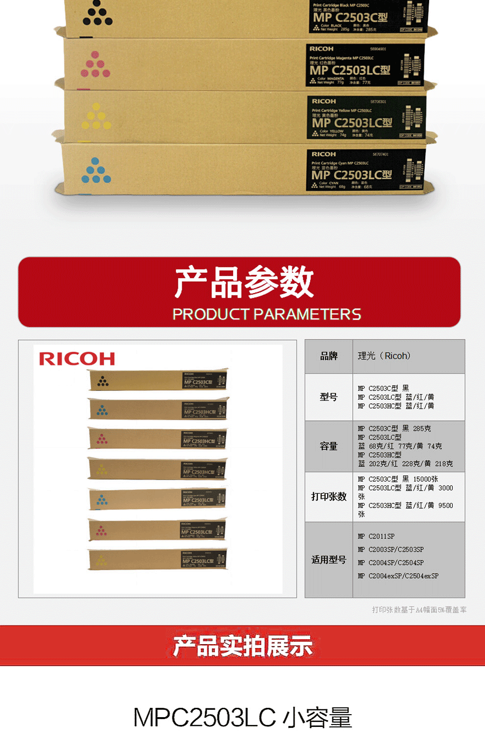 理光(Ricoh) 彩色墨粉 碳粉盒适用C2011/C2004/C2504exSP MP C2503LC型 红色 3000页MP C2503C 红色