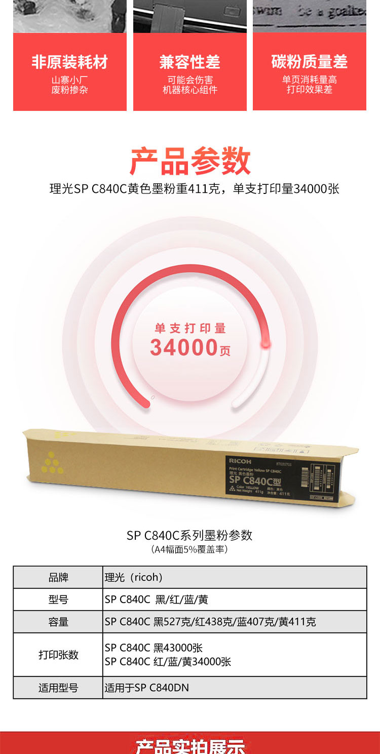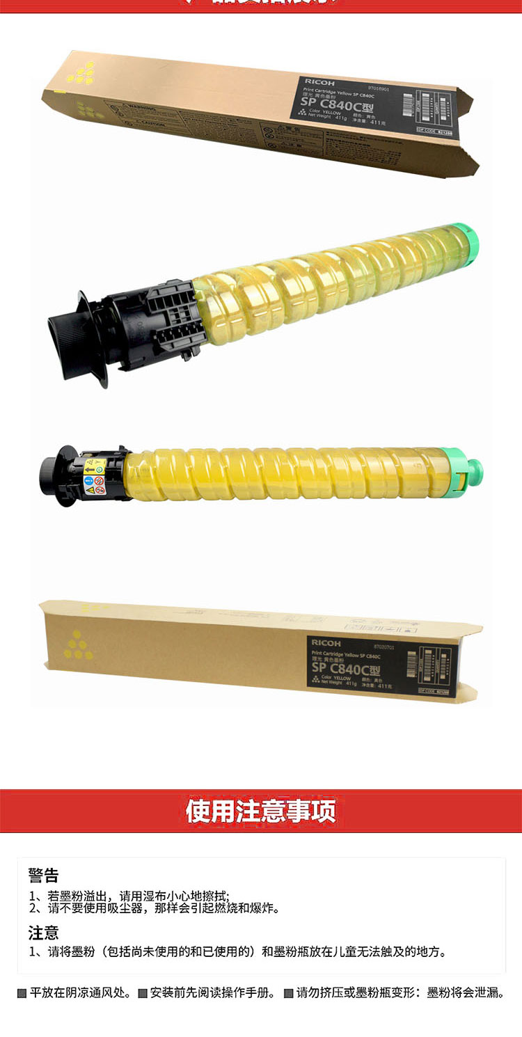 理光(Ricoh) 黄色墨粉盒 适用于SP C840DN SP C840C型 黄色