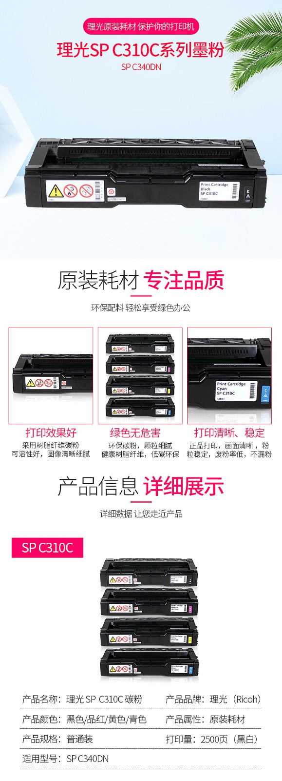 理光(Ricoh)系列碳粉墨粉盒硒鼓 适用C242/C231 C31 C310HC大容量 黄色SP C310C HC型 鹅仔黄