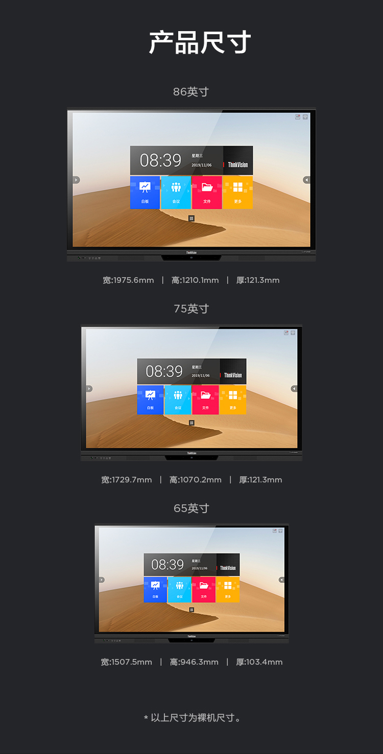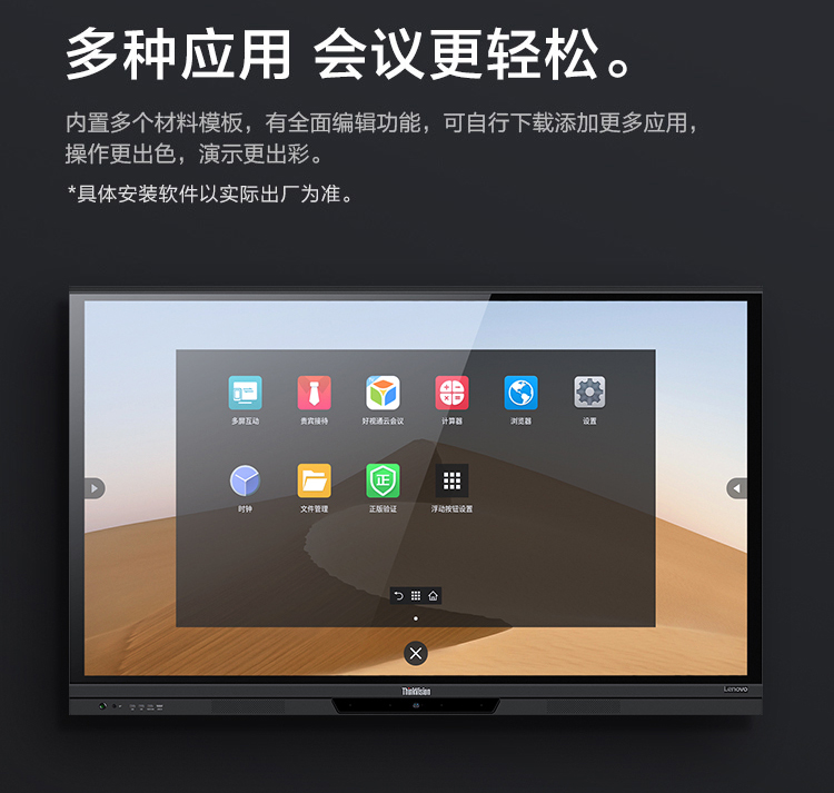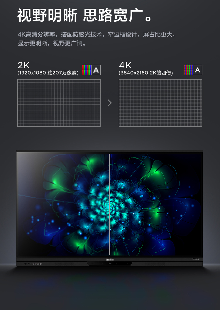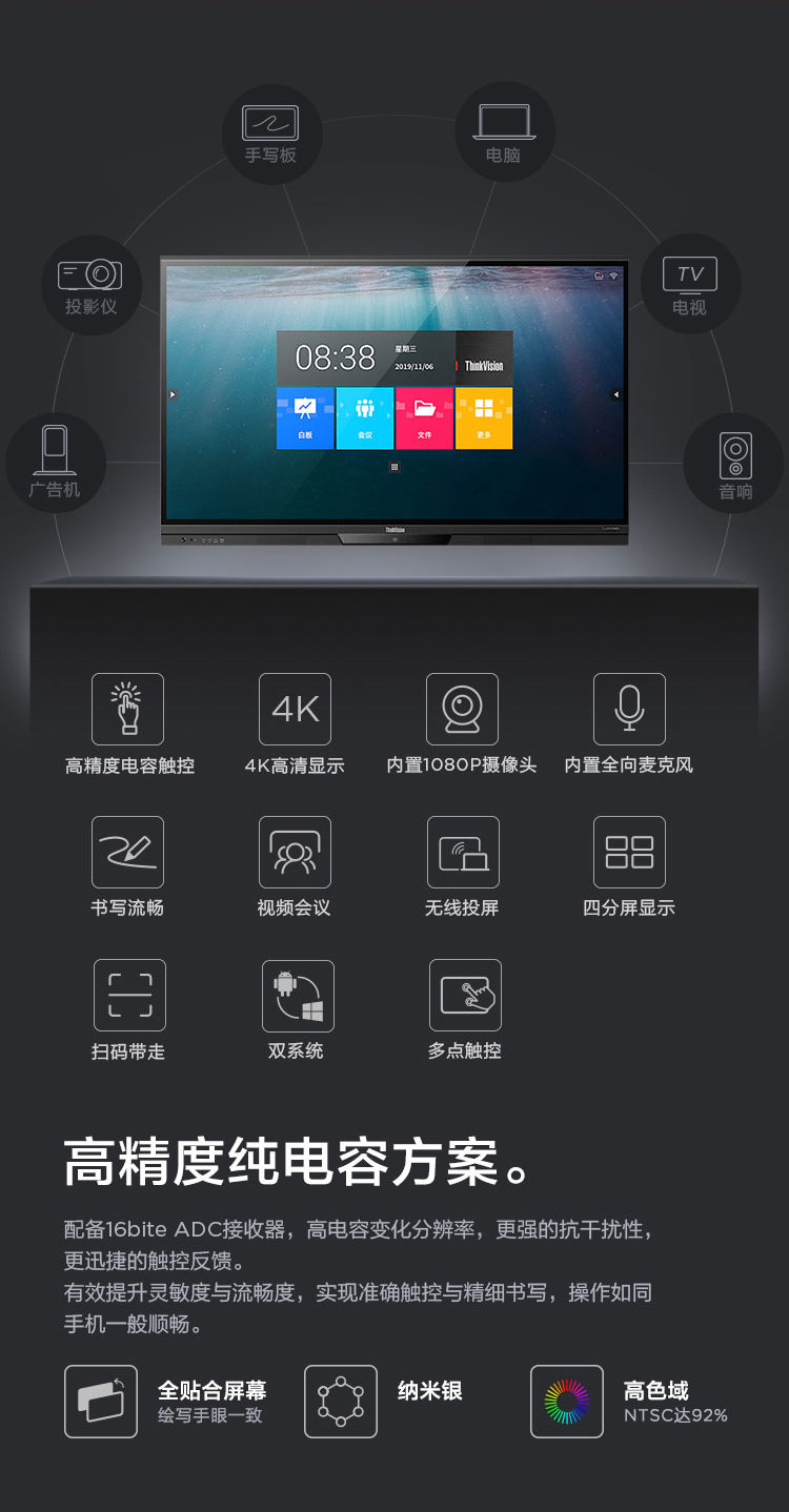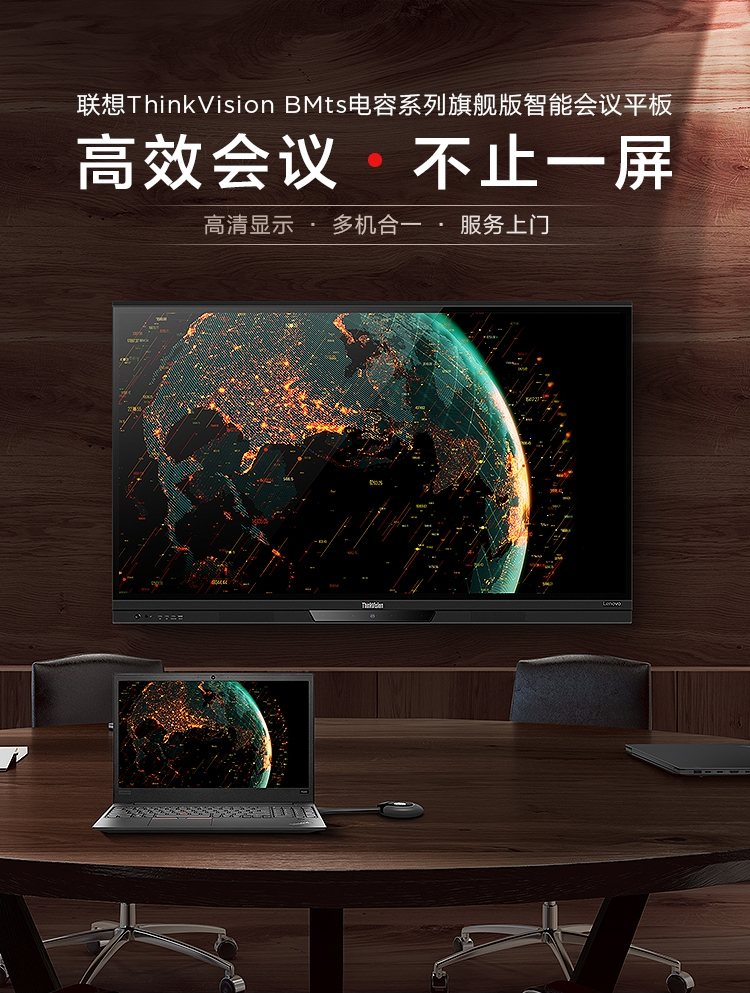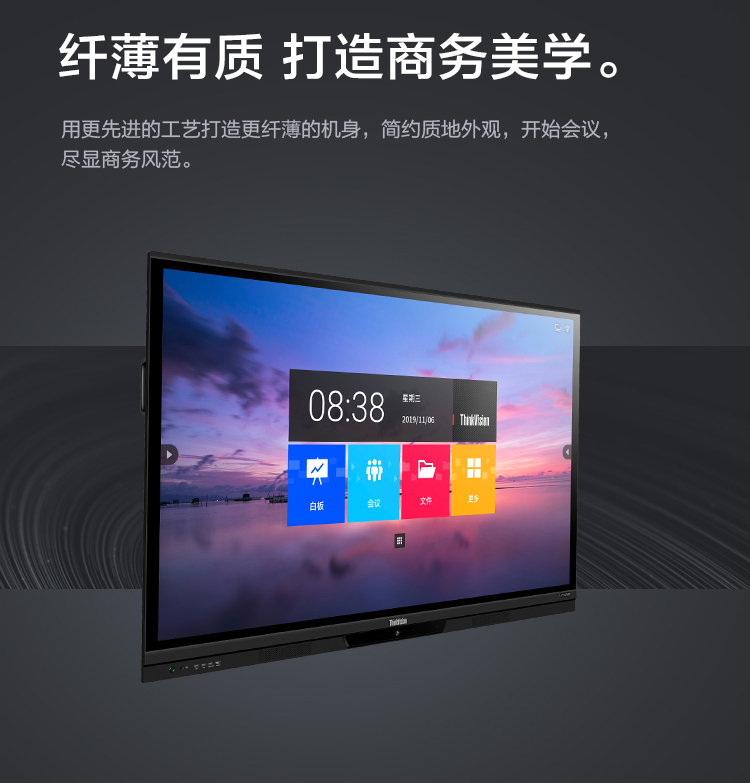 联想智慧大屏 BM电容系列 65英寸远程视频会议平板 交互式电子白板 4K高清触控办公一体机BM65ts 黑色