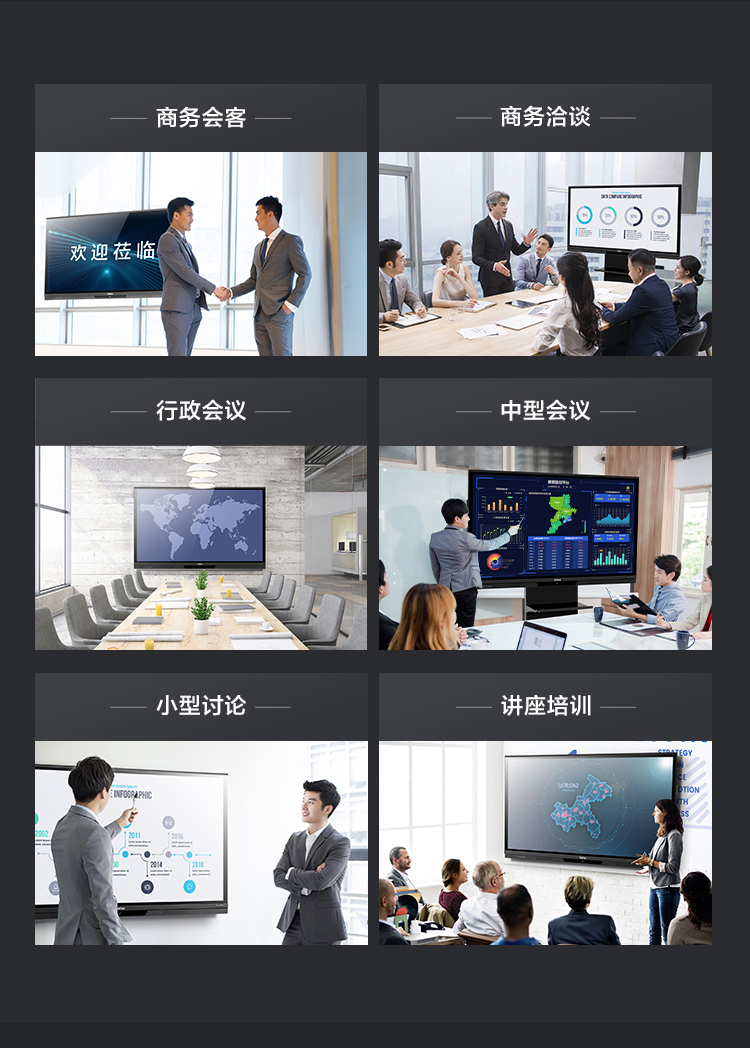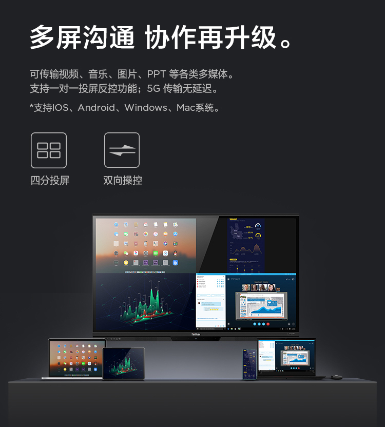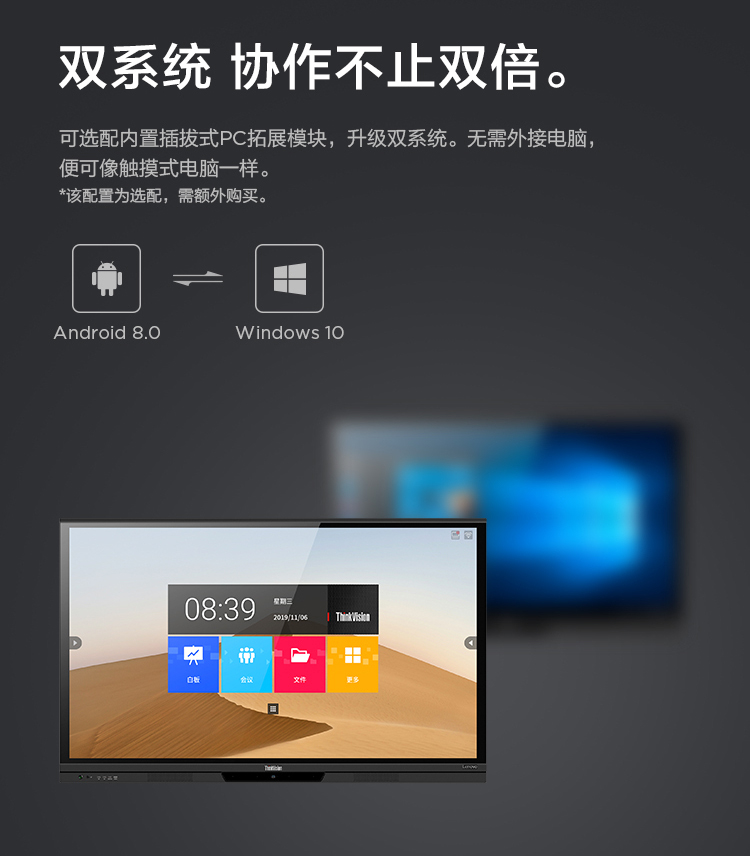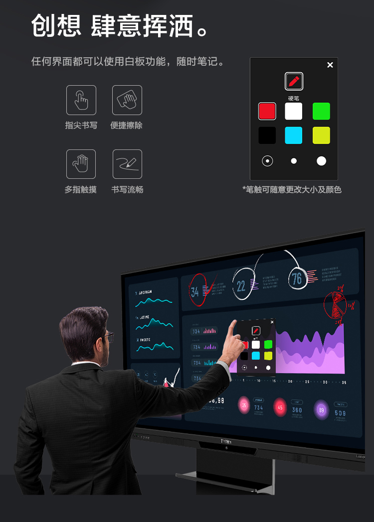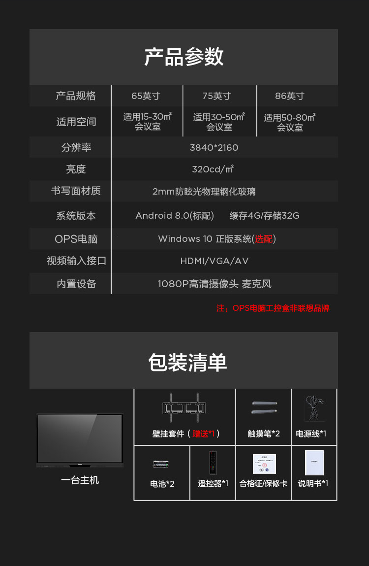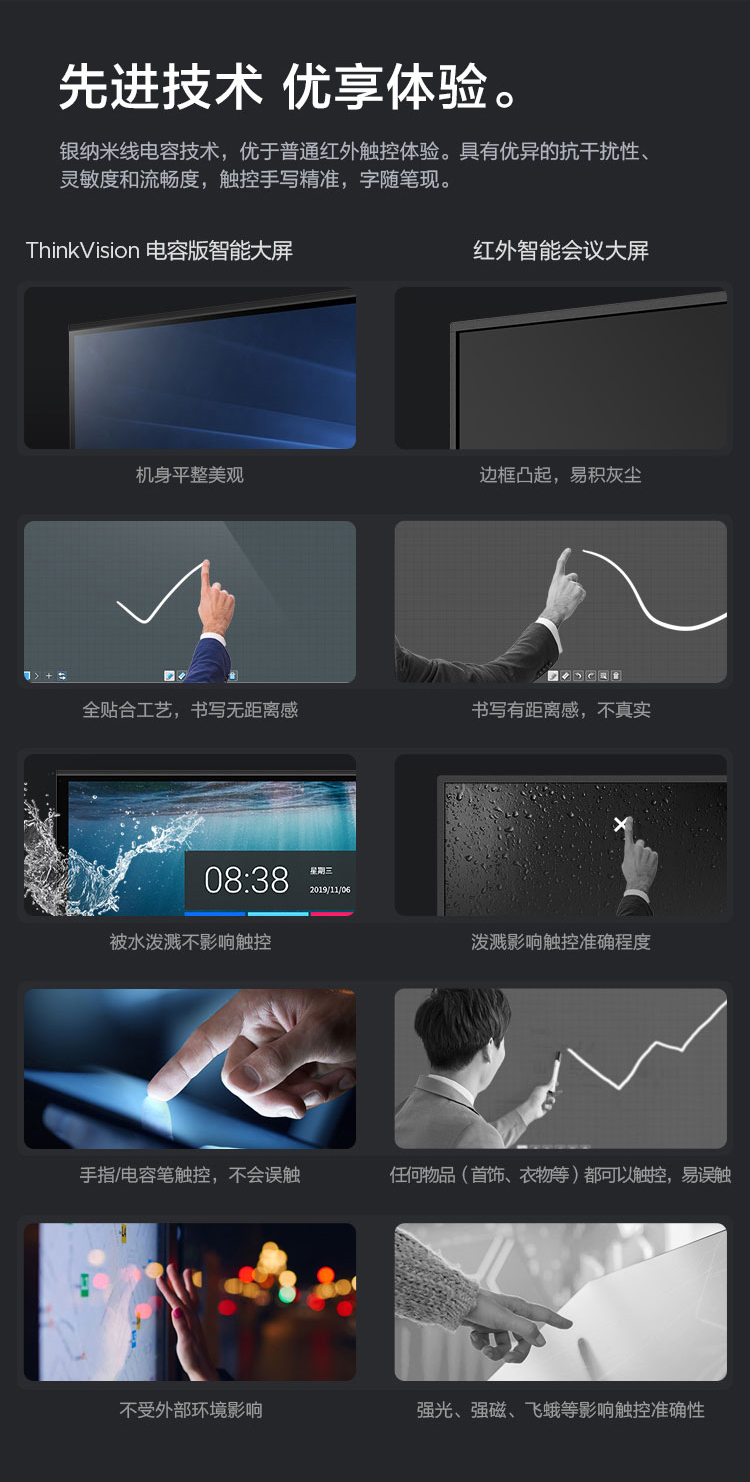 联想智慧大屏 BM电容系列 65英寸远程视频会议平板 交互式电子白板 4K高清触控办公一体机BM65ts 黑色