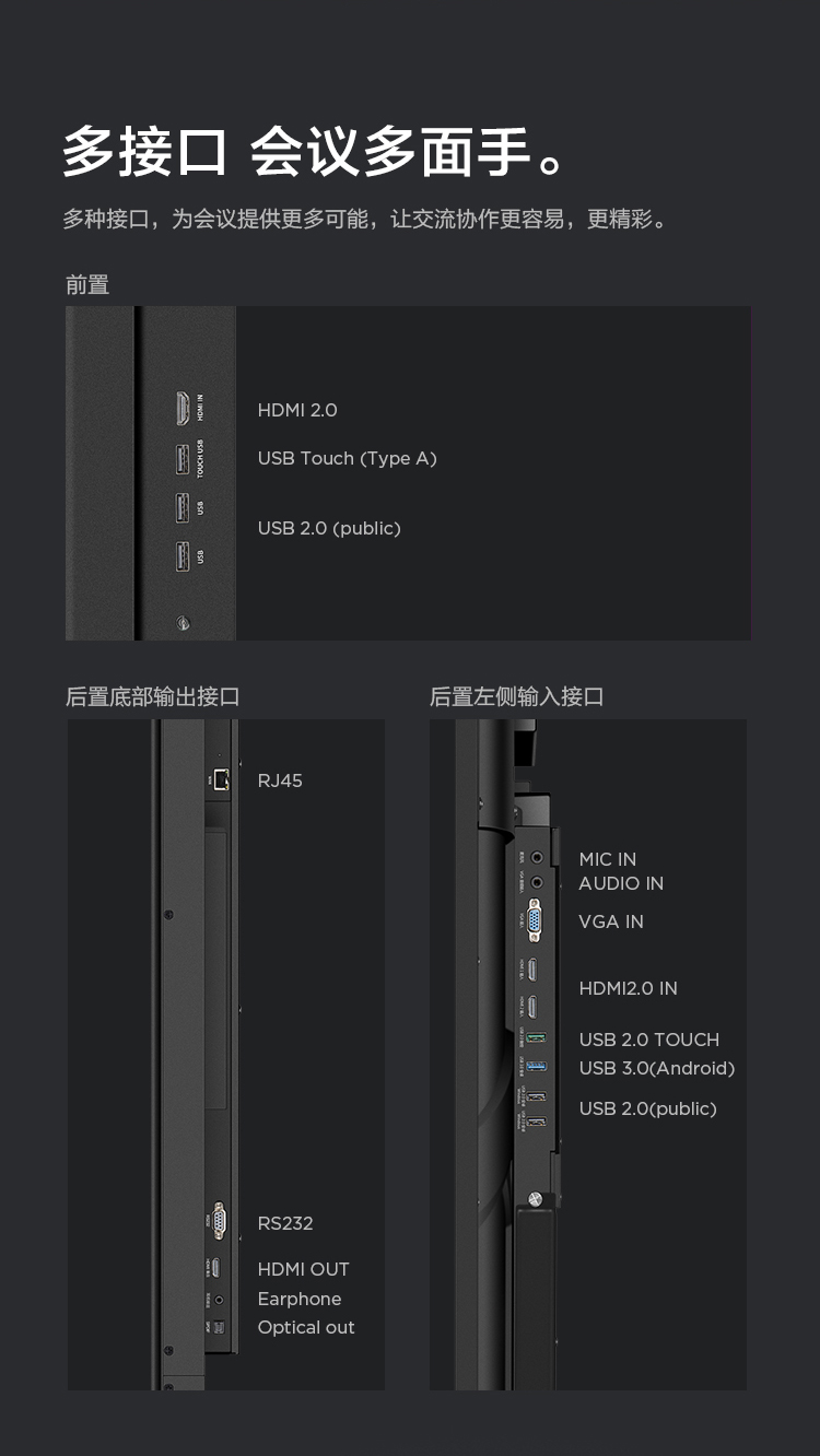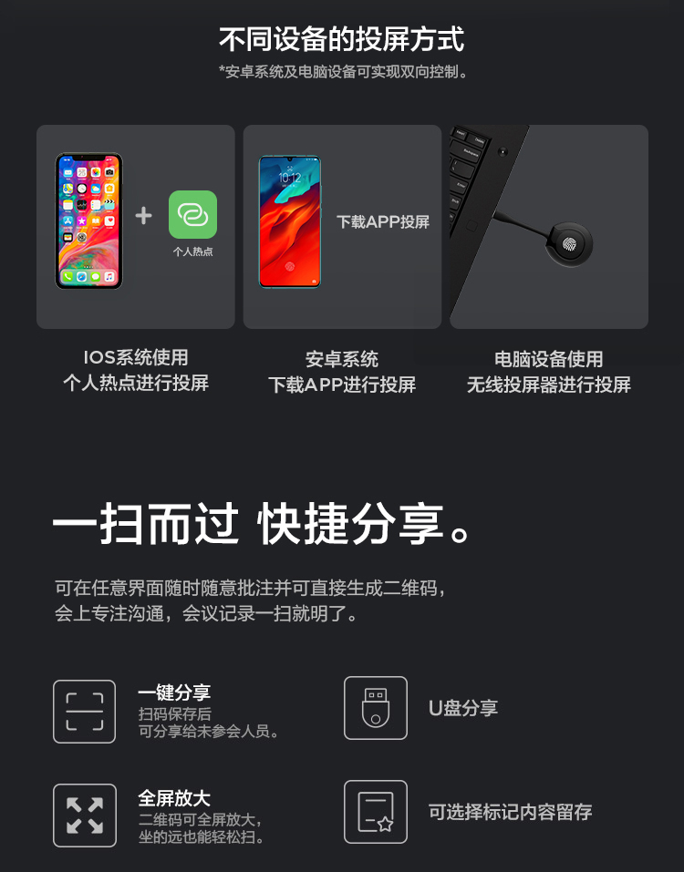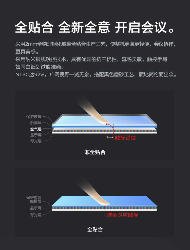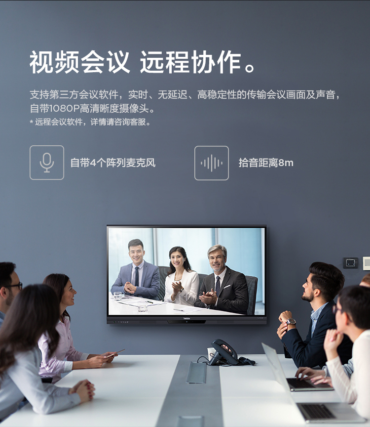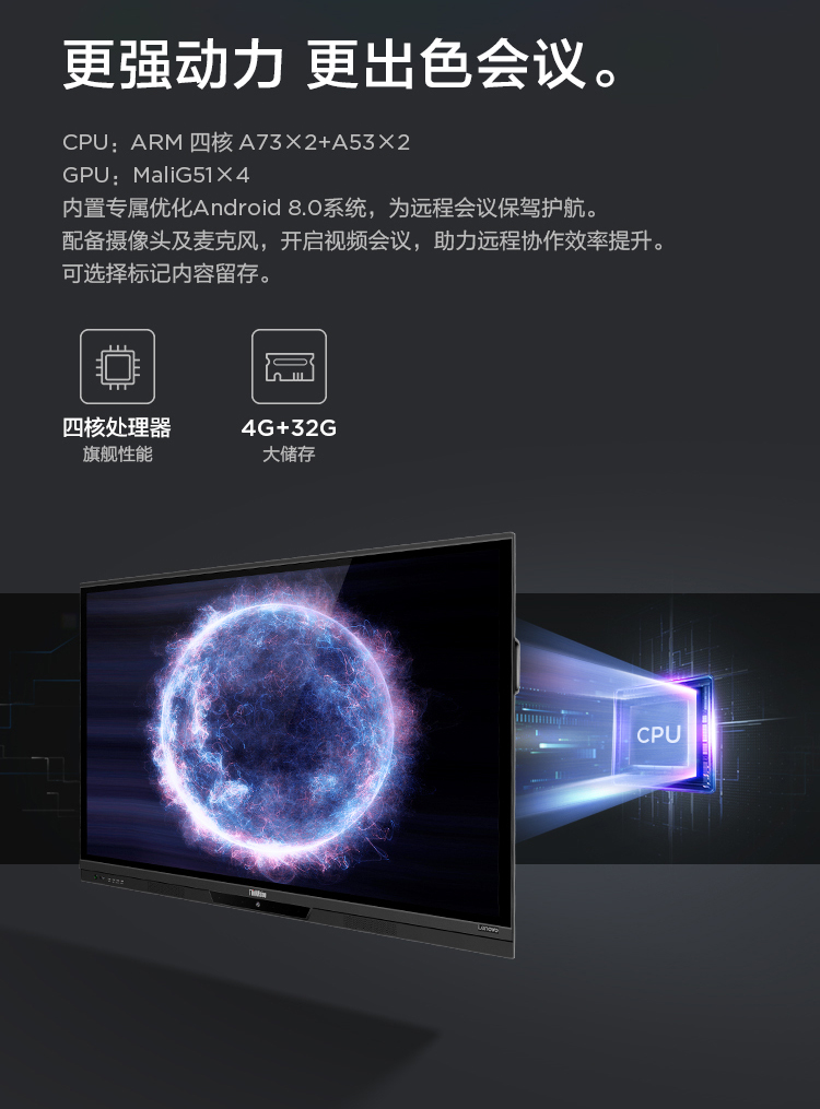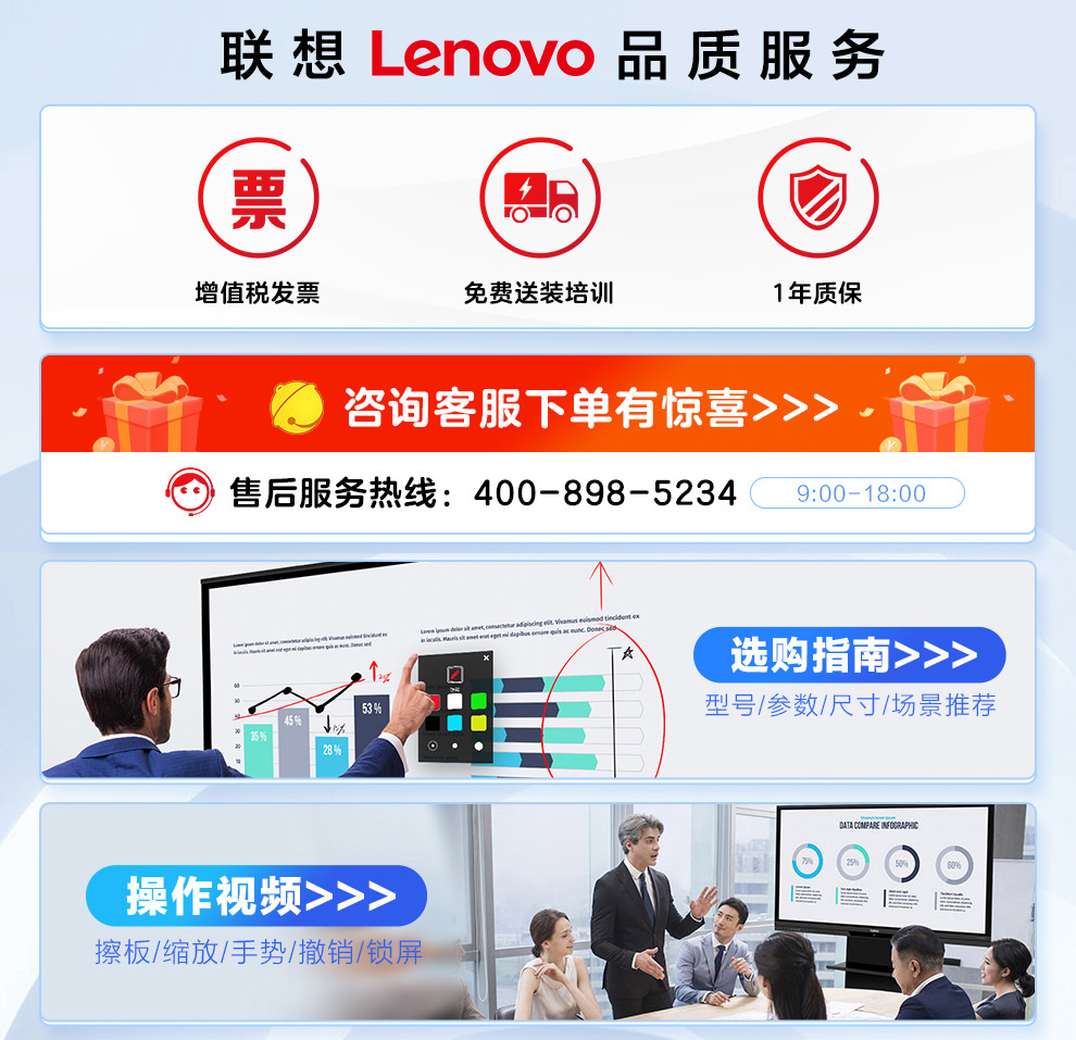 联想智慧大屏 BM电容系列 65英寸远程视频会议平板 交互式电子白板 4K高清触控办公一体机BM65ts 黑色