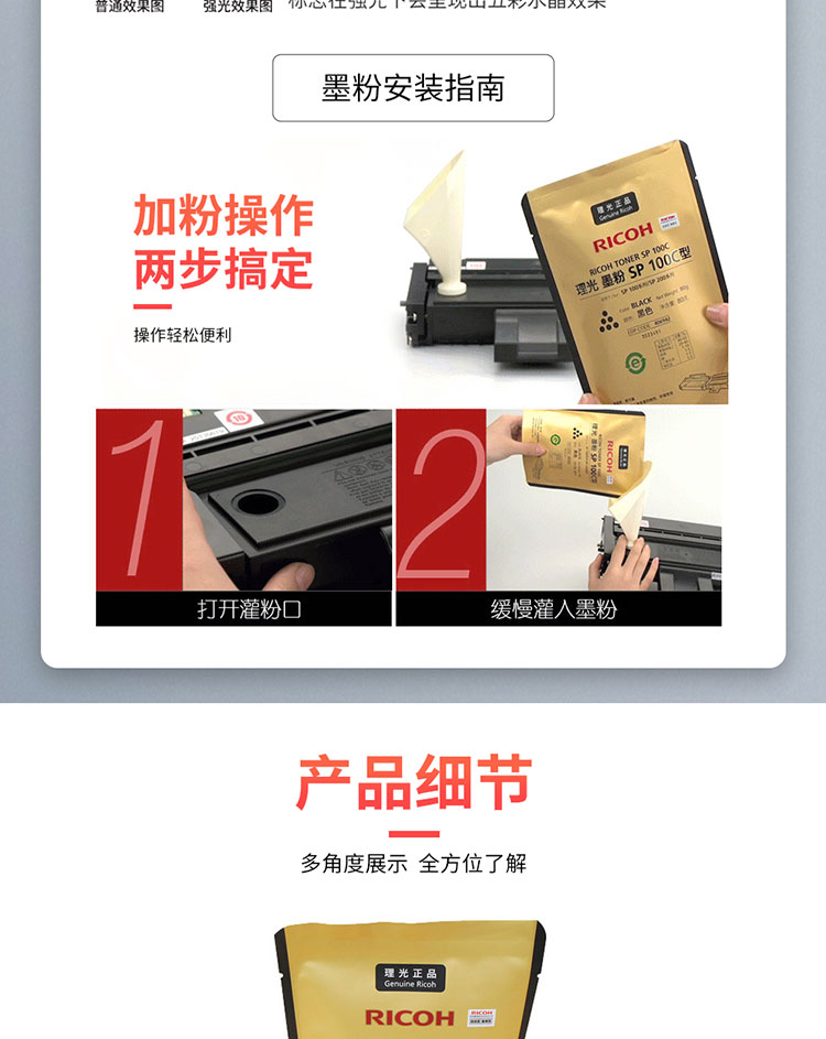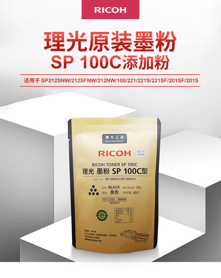 理光(Ricoh)原装补充装墨粉 适用于SP 100/221/201/212系列 SP 100C 黑色