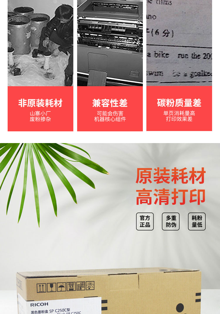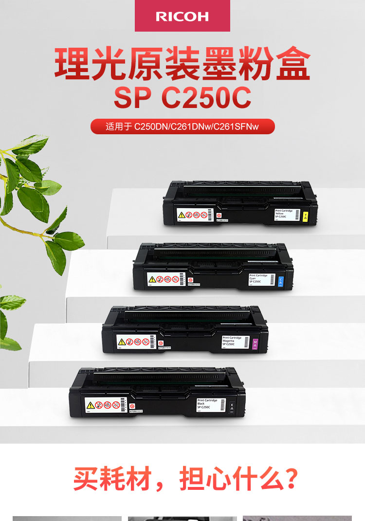 理光(Ricoh)黑色墨粉盒1支装 适用于SP C250DN/C261DNw/C261SFNw SP C250C 黑色