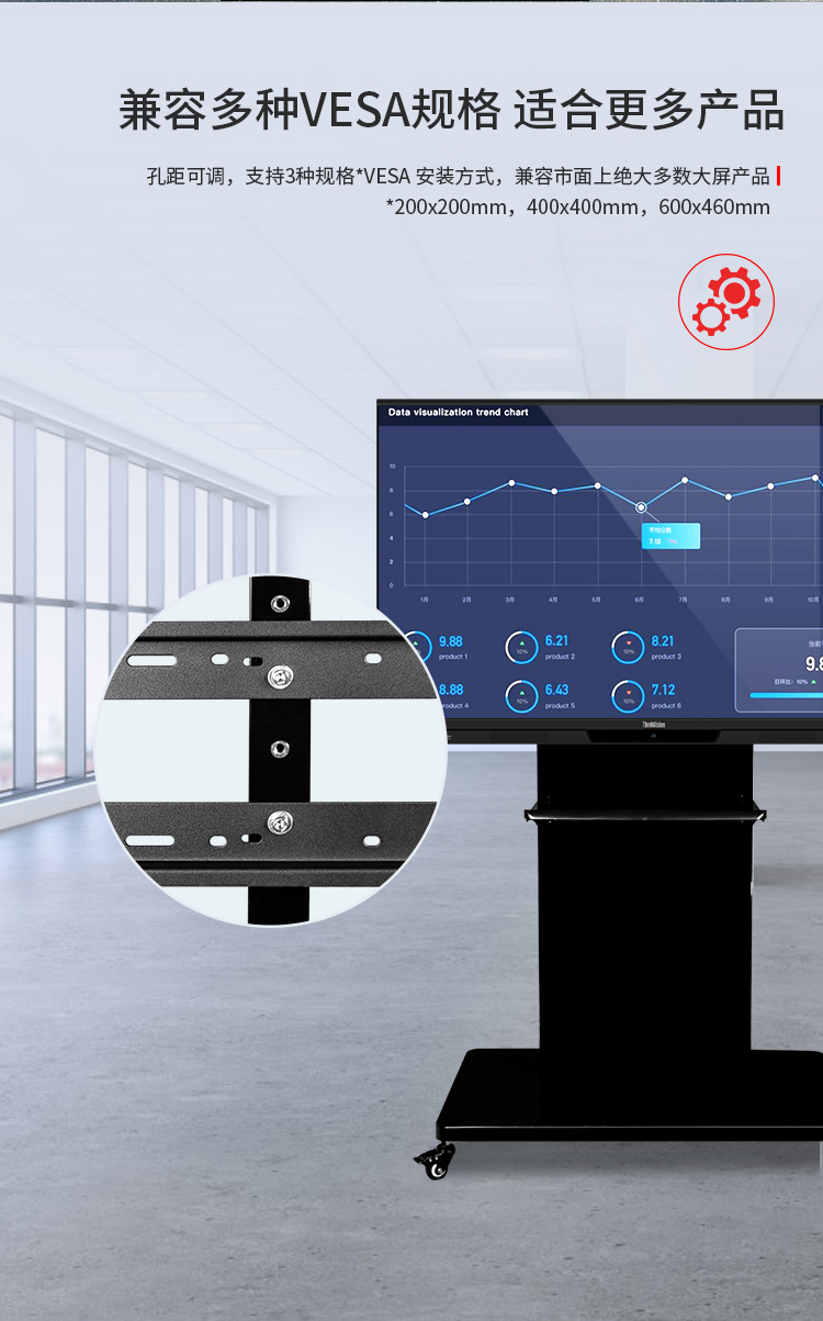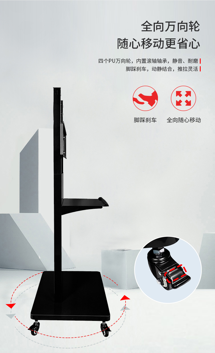 联想(Lenovo)智能大屏移动支架 可挂65英寸-75英寸会议平板 CS86 黑色