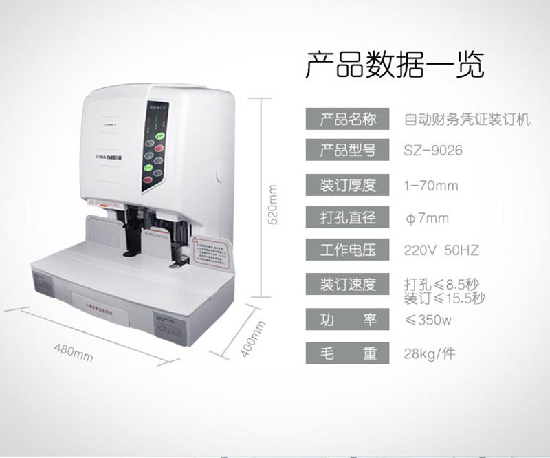 三木 SUNWOOD SZ-9026 财务凭证装订机 70MM 白色