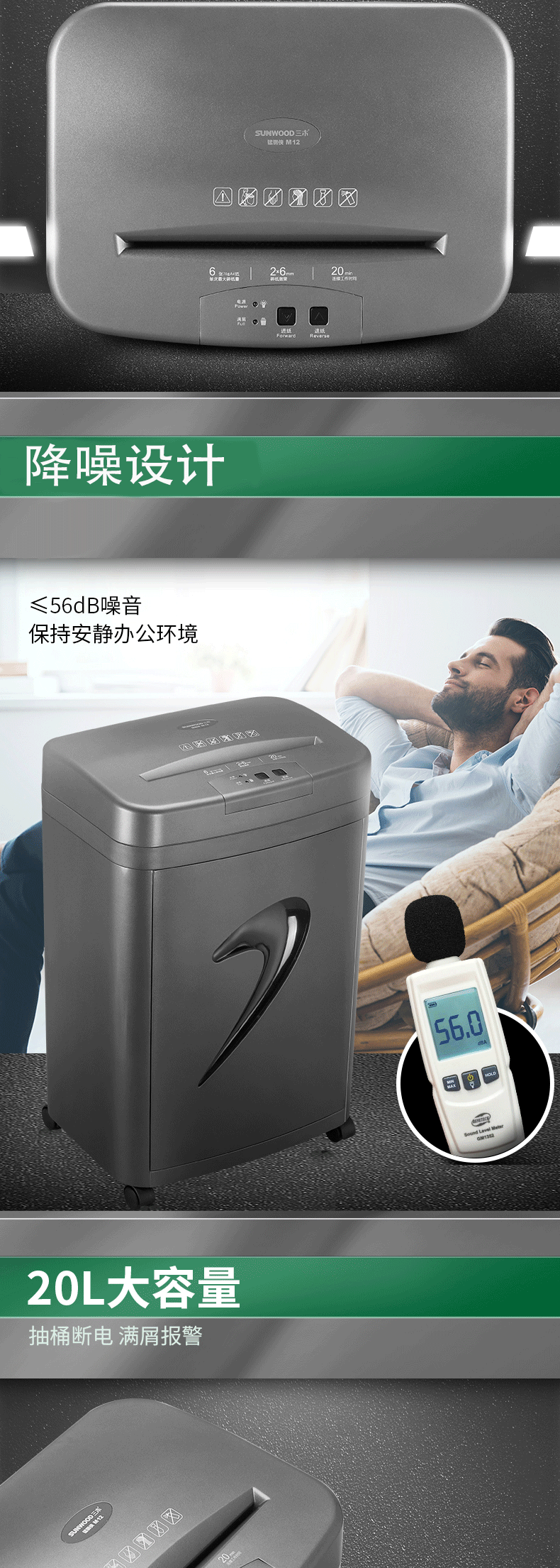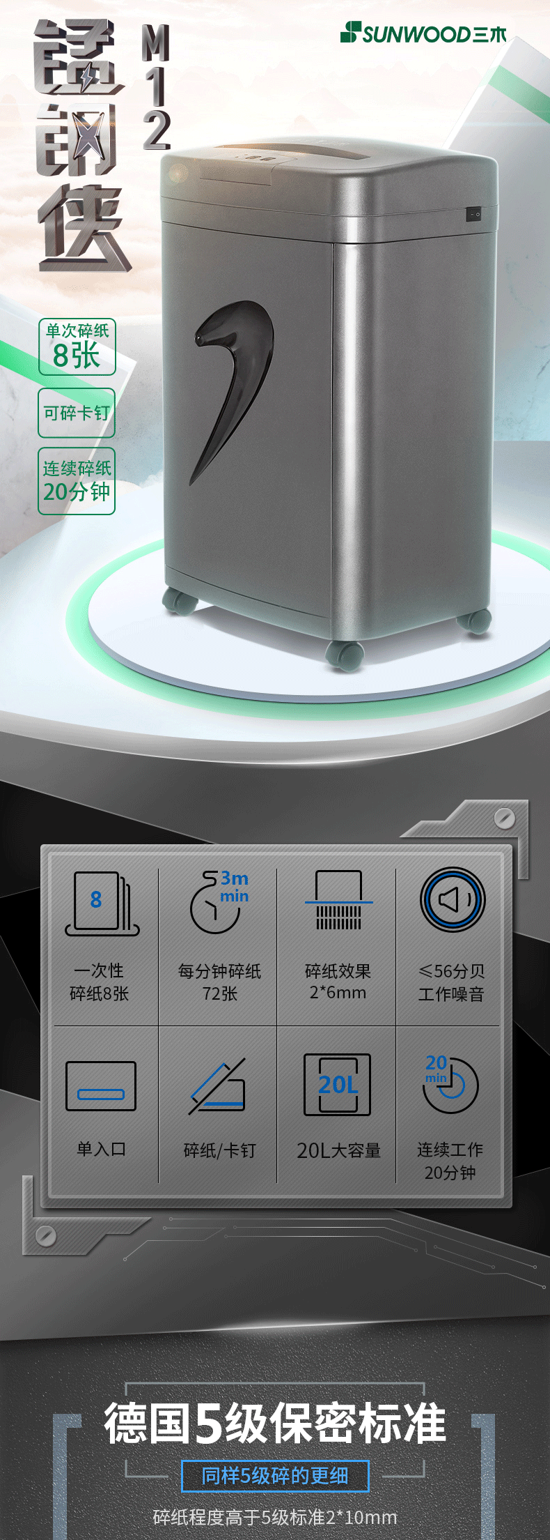 三木(SUNWOOD) M12 (2×6MM) 碎纸机 黑色