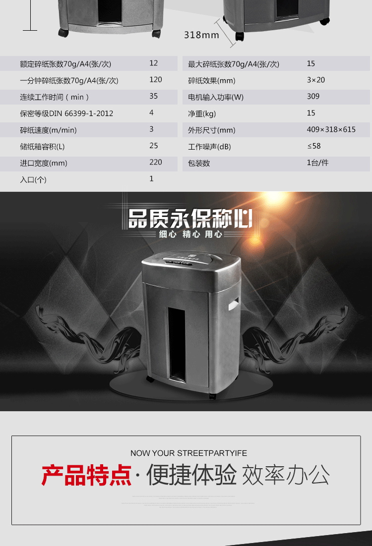 三木(SUNWOOD) M33 (3×20MM) 碎纸机 黑色
