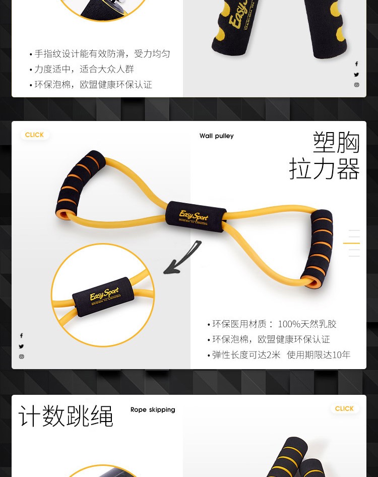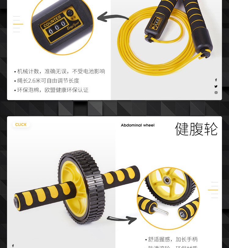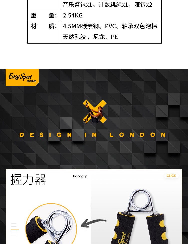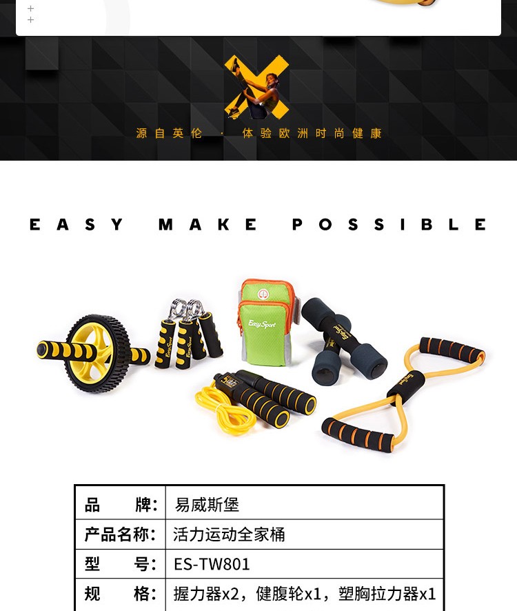 易威斯堡(EasySport)计数跳绳+塑胸拉力器+音乐臂包+握力器+哑铃 运动健身ES-TW801 混色