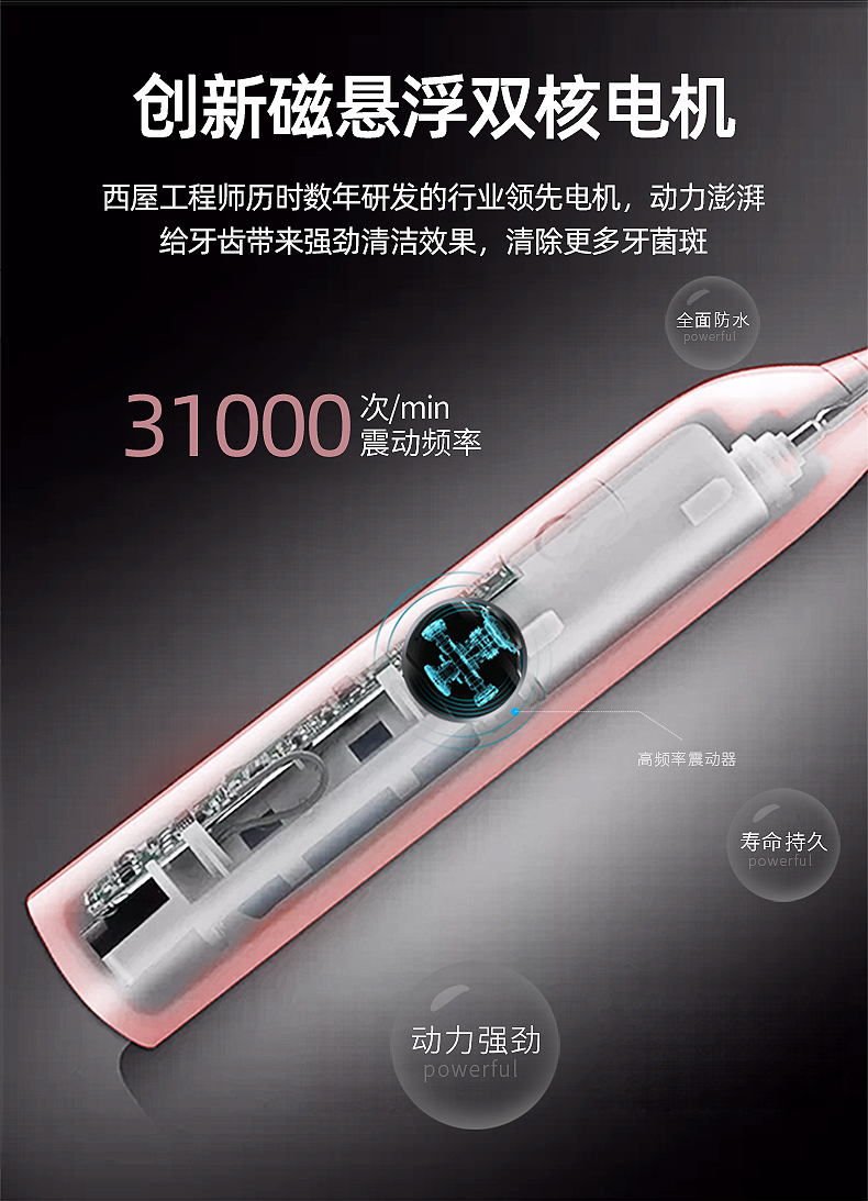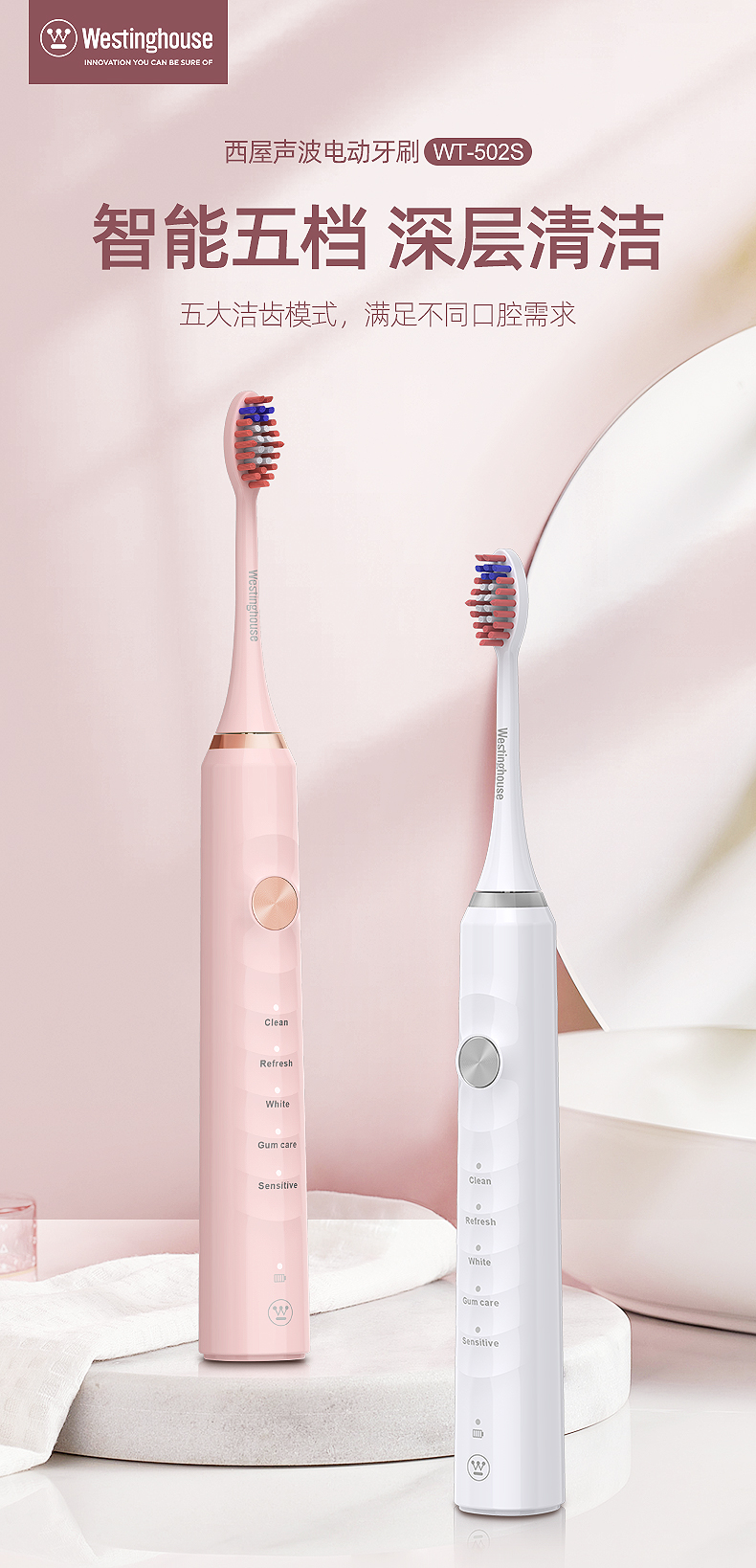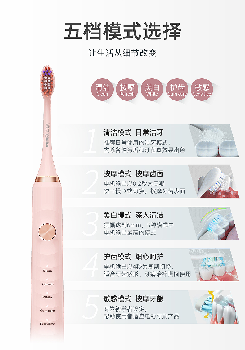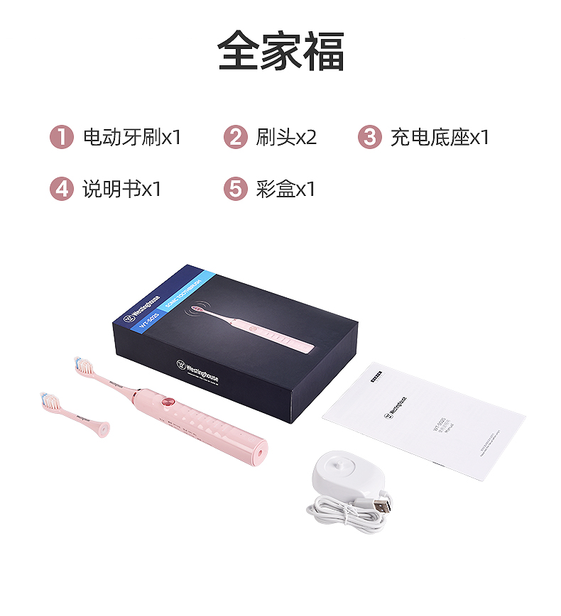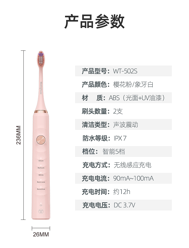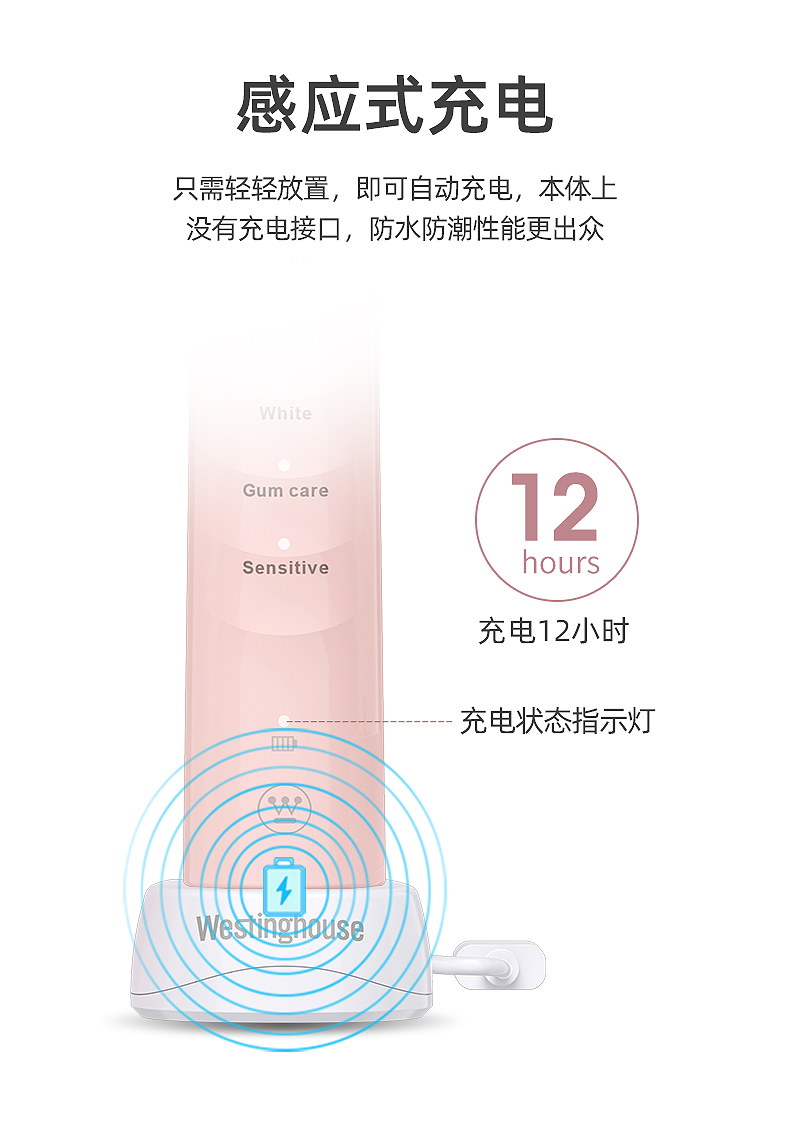 西屋(Westinghouse) 声波电动牙刷成人款 WT-502S 重量85g 象牙白(单位:个)