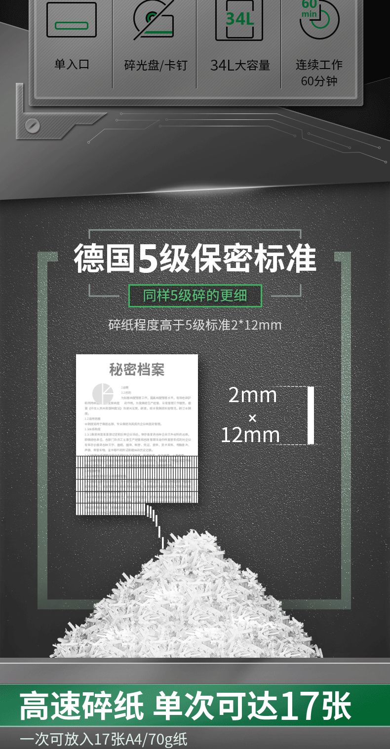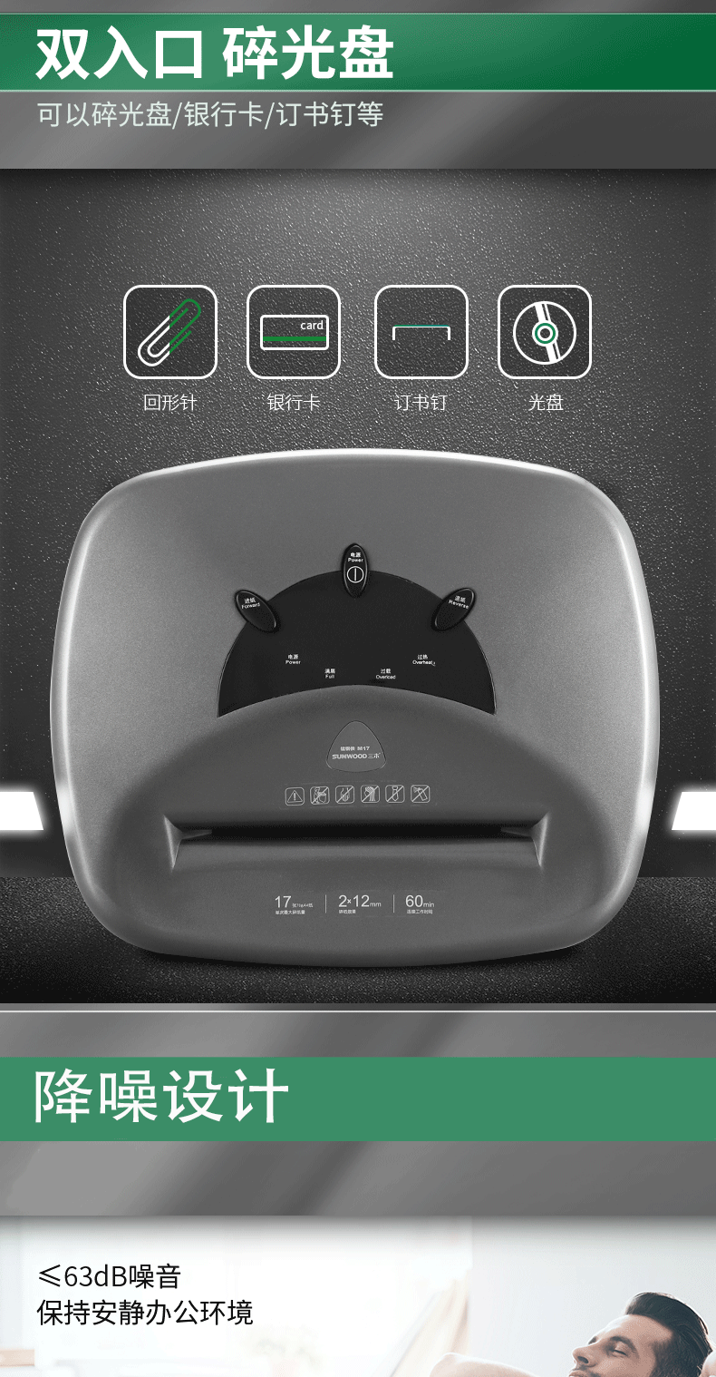 三木(SUNWOOD) M17 (2×12MM) 碎纸机 黑色