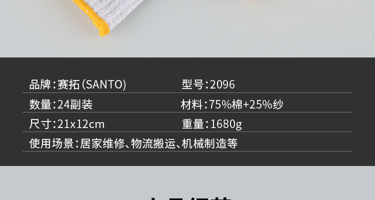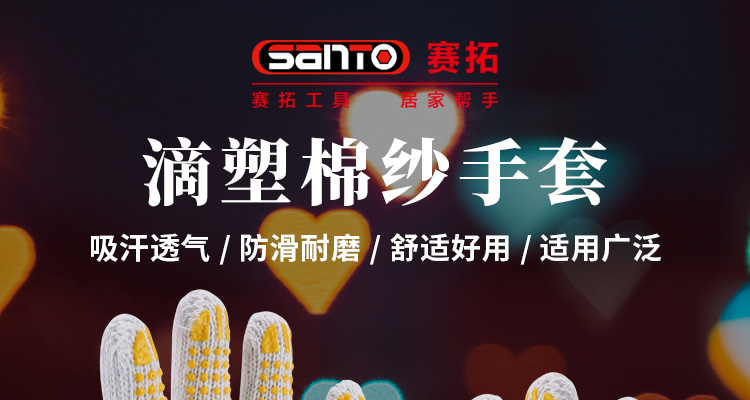 赛拓(SANTO) 滴塑劳保手套 点珠点塑 防滑耐磨手套 【2096】24付装 白色