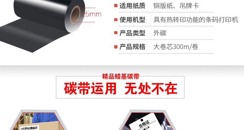 e代经典 蜡基碳带110mm*300m 精品蜡基碳带 蜡基条码打印机专用色带 打印机色带 标签带/个 黑色