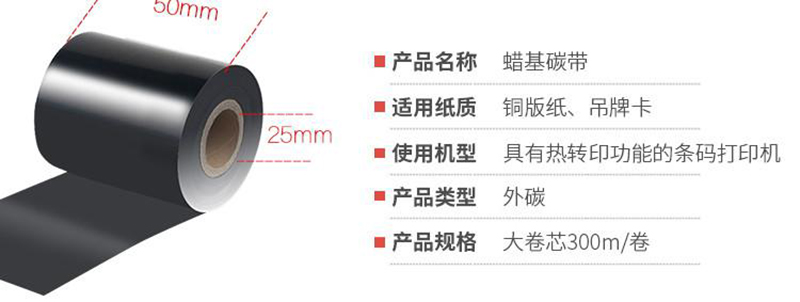 e代经典 蜡基碳带50mm*300m 精品蜡基碳带 条码打印机专用色带 标签带/个 黑色
