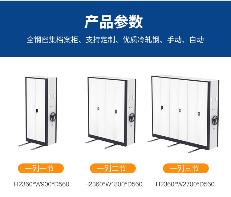 维仕蓝 电动密集架文件柜手摇式移动档案资料钢制轨道密集柜 一列2组每立方单价 单组尺寸900mm*2300mm*560mm 灰色