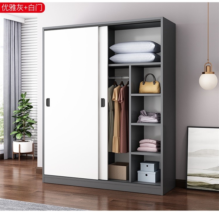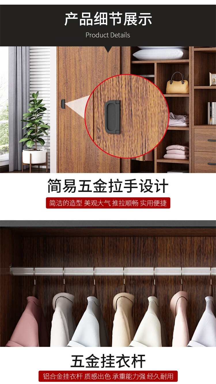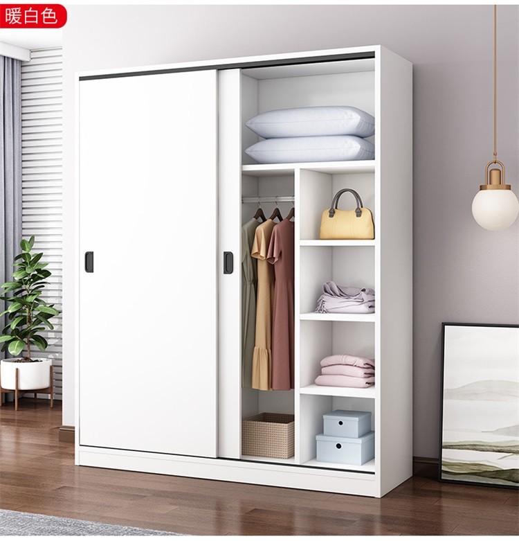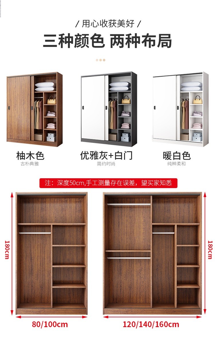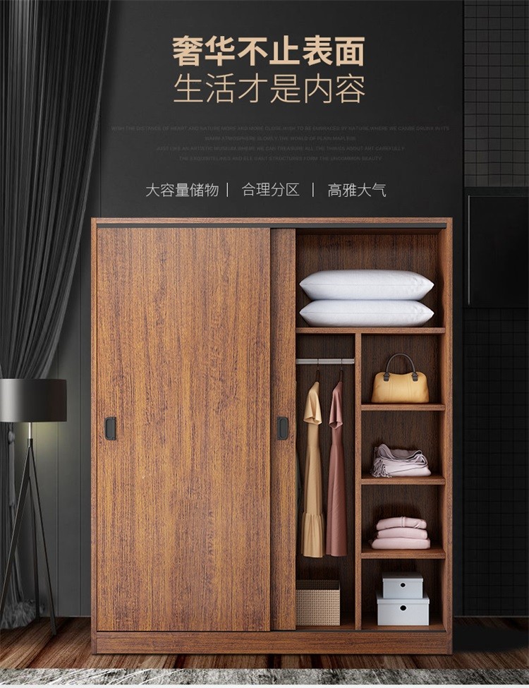 维仕蓝 移门大衣柜简易推拉门木质板式整体组装卧室移门柜简约二门大衣柜800*500*1800mm 棕色
