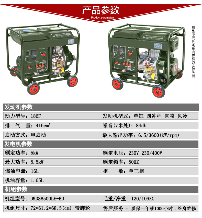 东明 DONMIN 双电压同等功率5KW单三相一体柴油发电机组(可适用于高原地区), 移动便携发电机DMDS6500LE-BD 绿色