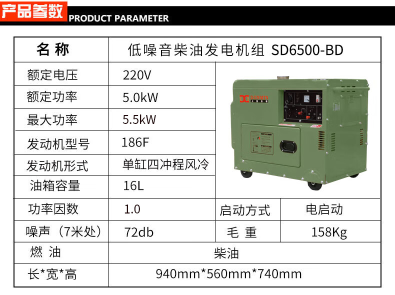 东明DONMIN 小型低噪音5KW应急备用移动便携式柴油发电机 SD6500-BD 绿色