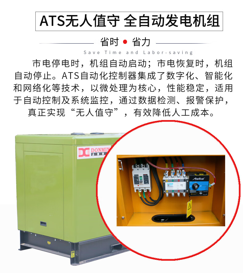 东明 DONMIN30kw低噪音ATS无人值守型玉柴柴油发电机,应急备用玉柴柴油发电 GF2-30Y(ATS)-BD 绿色