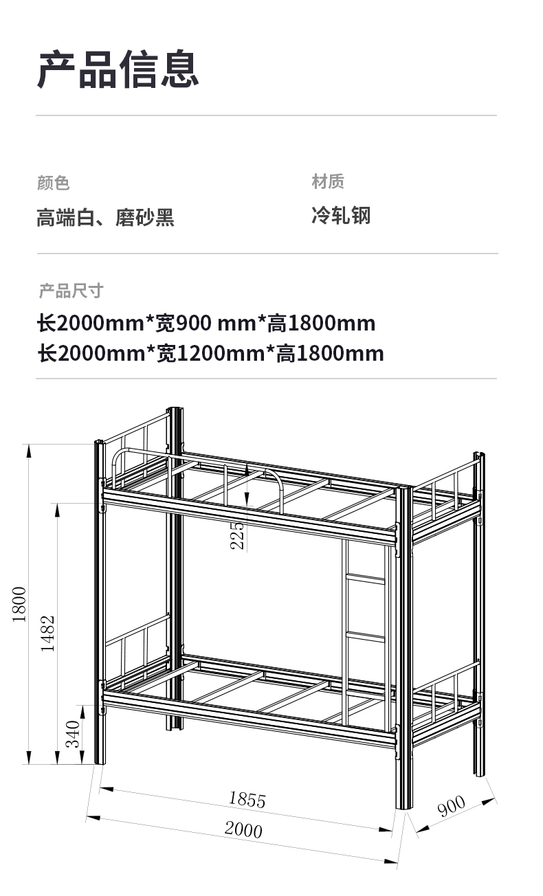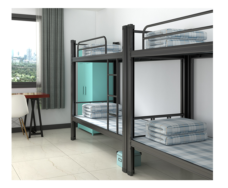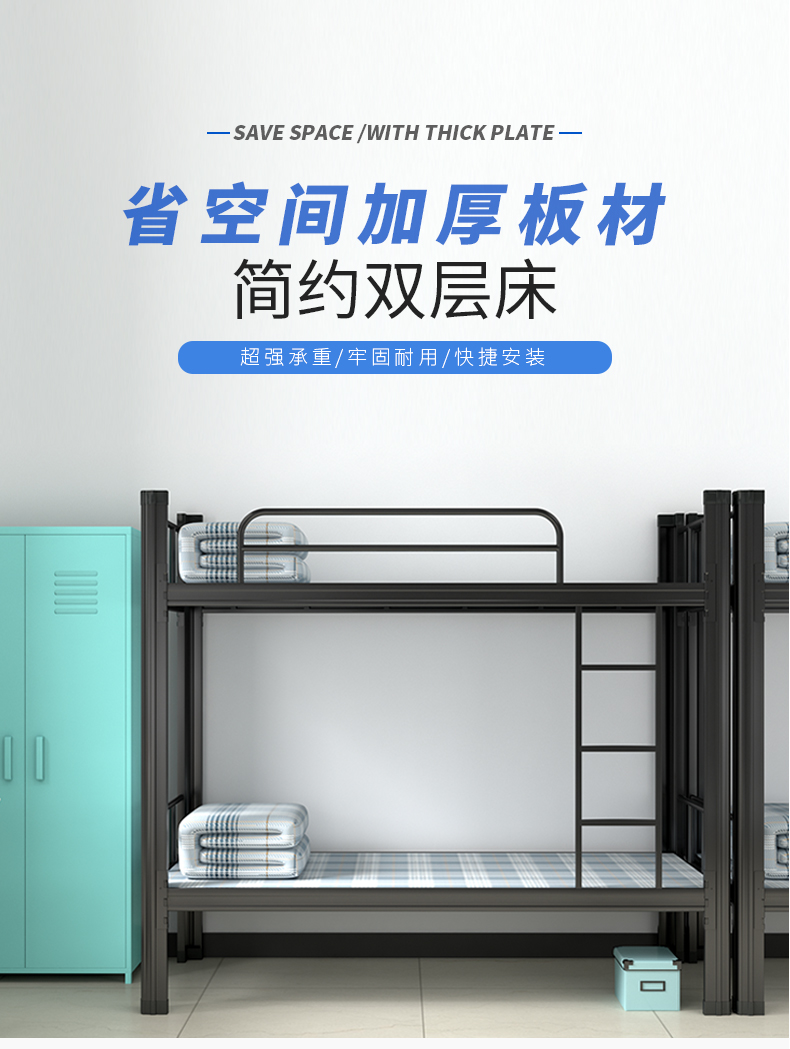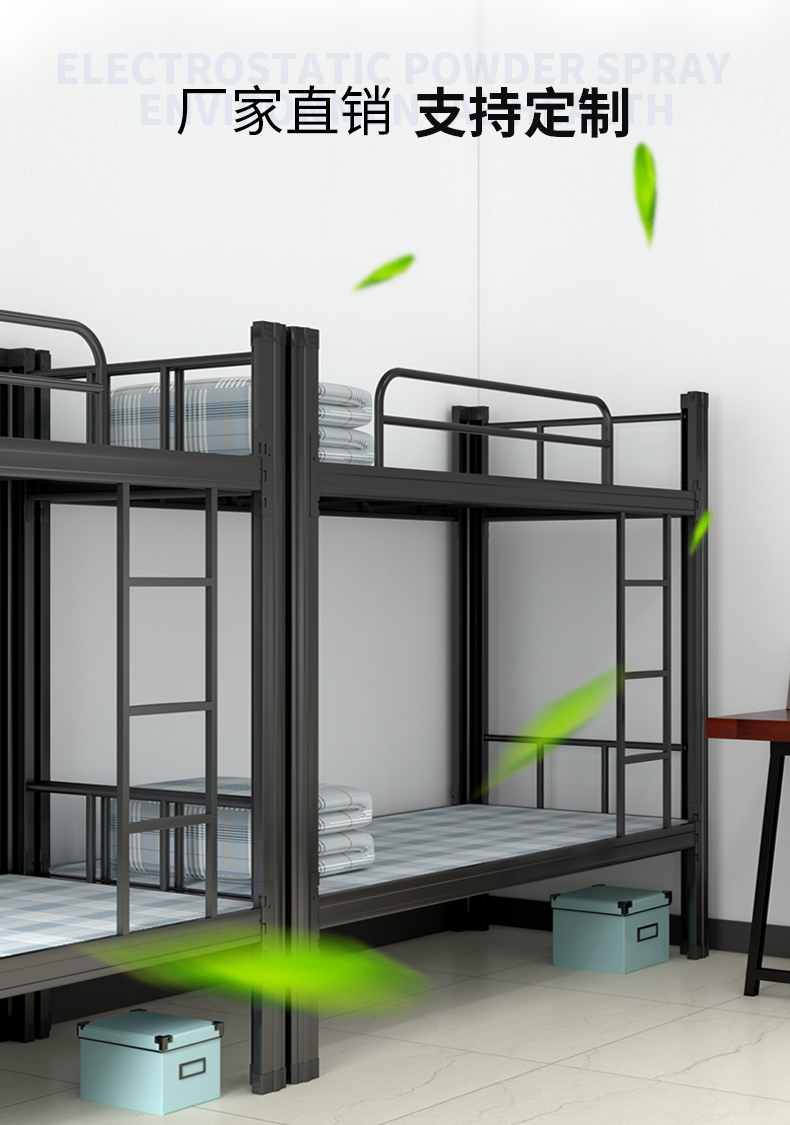 维仕蓝 (qichu)上下铺铁床0.9米成人员工宿舍双层床学生公寓寝室双人床铁架床 长2000宽900高1800黑色含床板 黑色