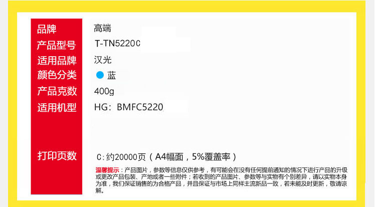高端粉盒T-TN5220C专业版适用HG BMFC5220 支 蓝色